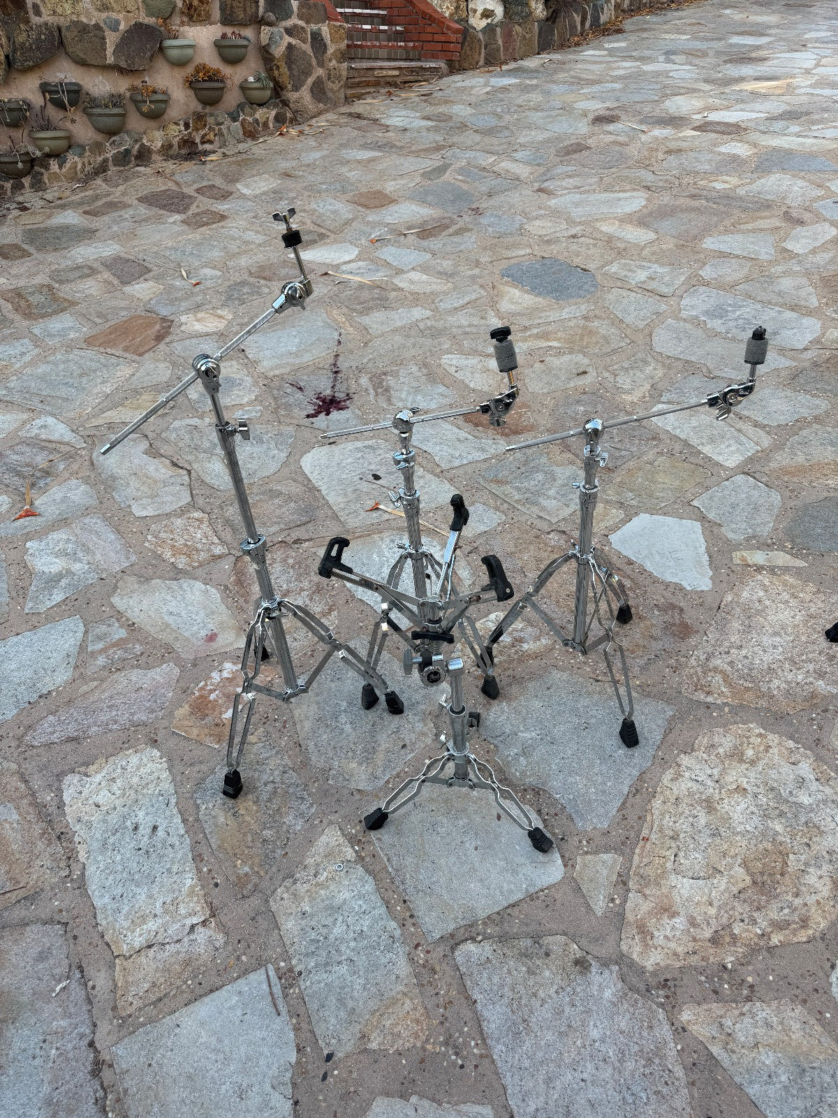 The tow pearl booms are newer model. One slightly older pearl and then the snare stand has a older bottom but newer top basket. Snare stand has some minor rust. Otherwise all are working. From the pictures I think two of them are model bc920.