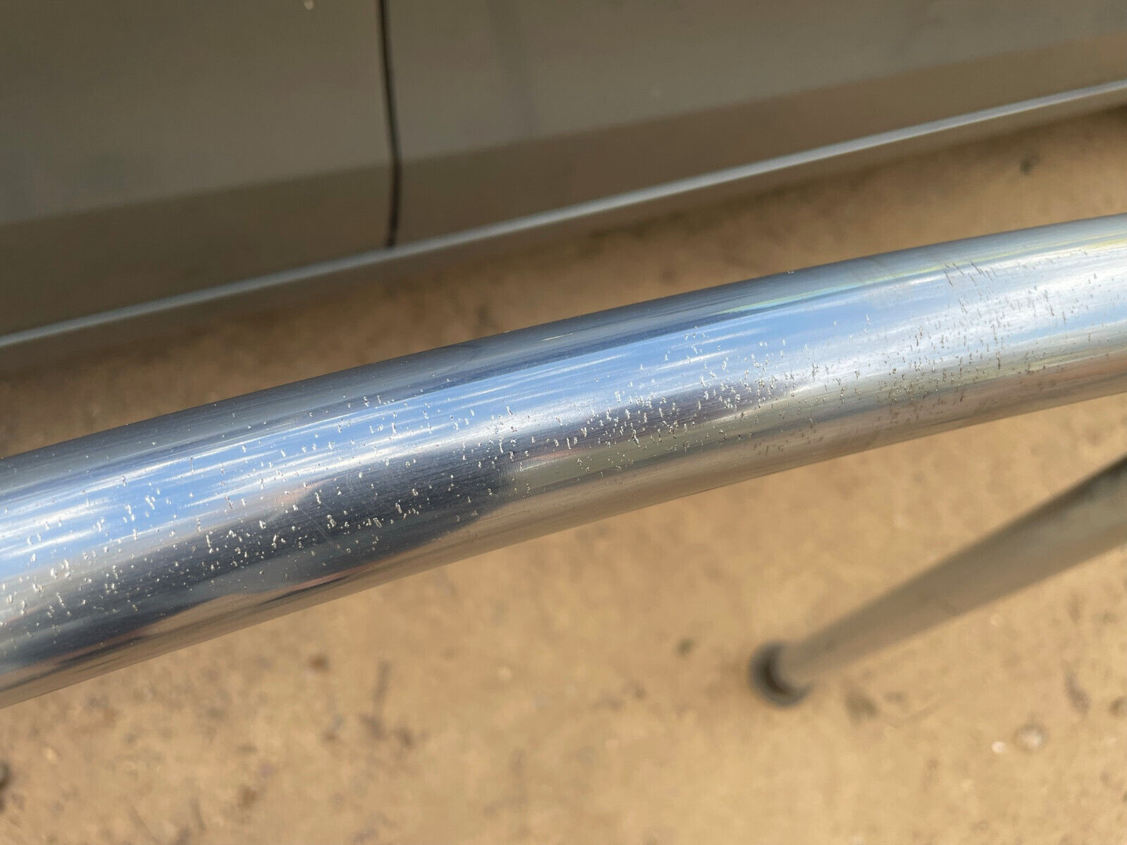 Has pitting and oxidation. So chrome is pitted. Works fine though. Comes as pictured.