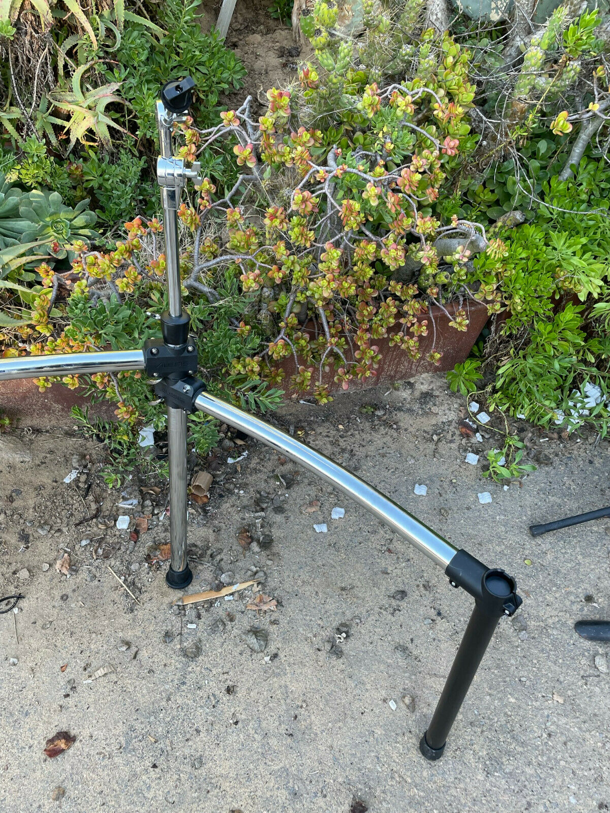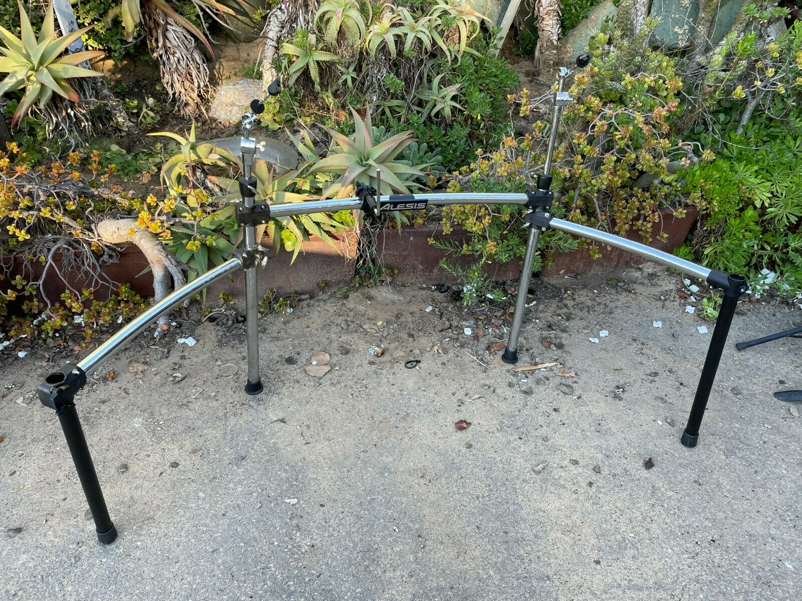 The rack does have some scratches . Missing some pieces from original setup. Black side legs appear to be replacement. The cymbal holders missing on the arms and only comes with the one clamps. So you need to add clamps