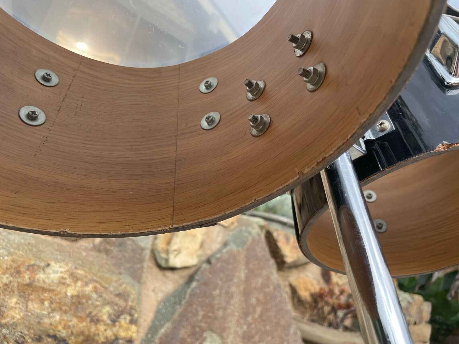 The drums look decent and sound fine. There is some wear along the bottom edges of the drums. A couple spots appears there is some normal ply separation (could be fixed with a syringe and some glue or they work just left alone)