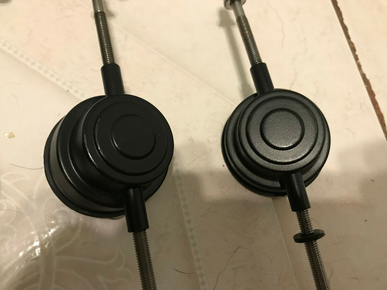 Someone re-coated in powder coat black. Spacing from screws 1 3/8". I believe these are lugs from the mexico factory drum workshop. Includes tension rods