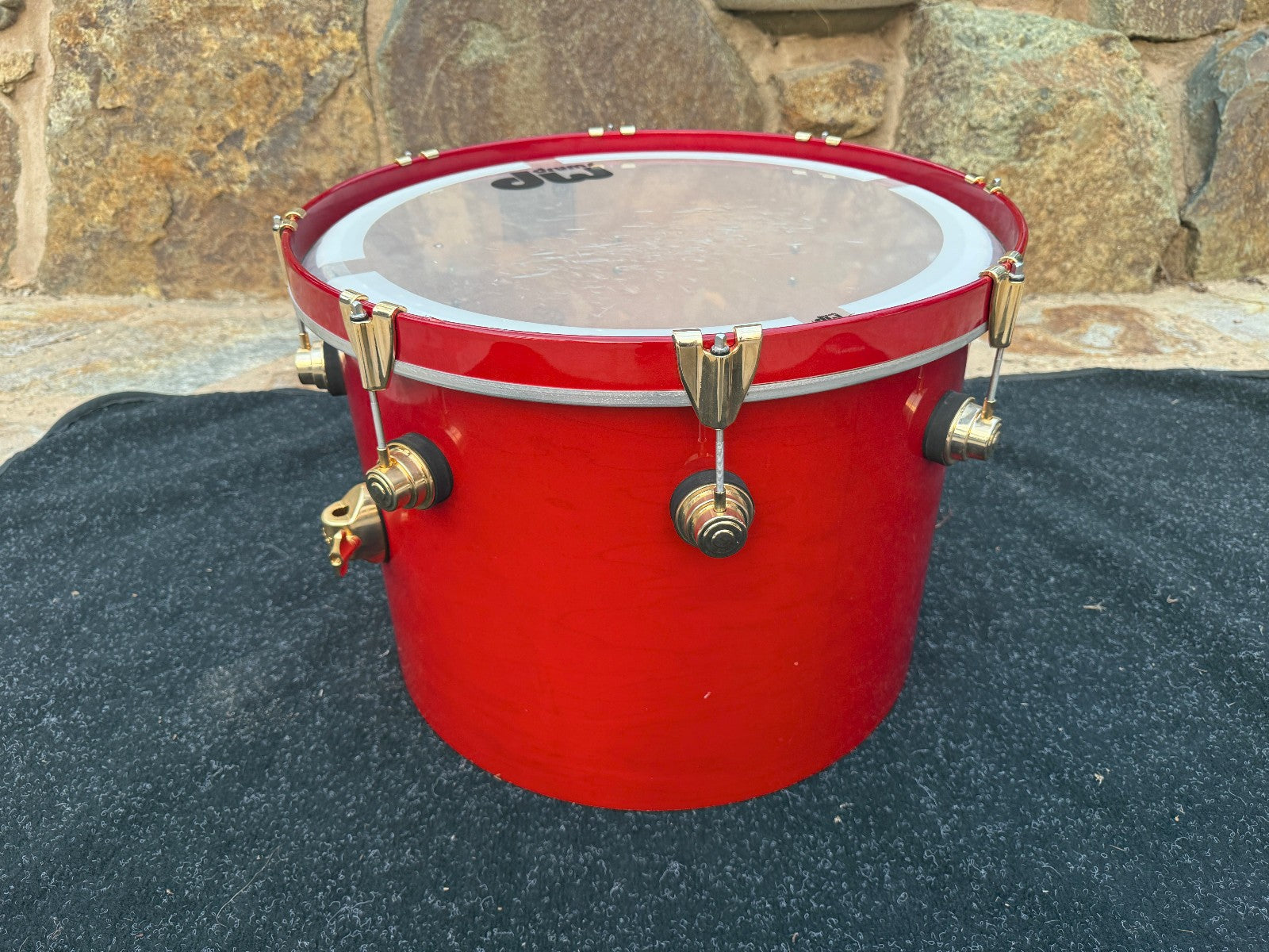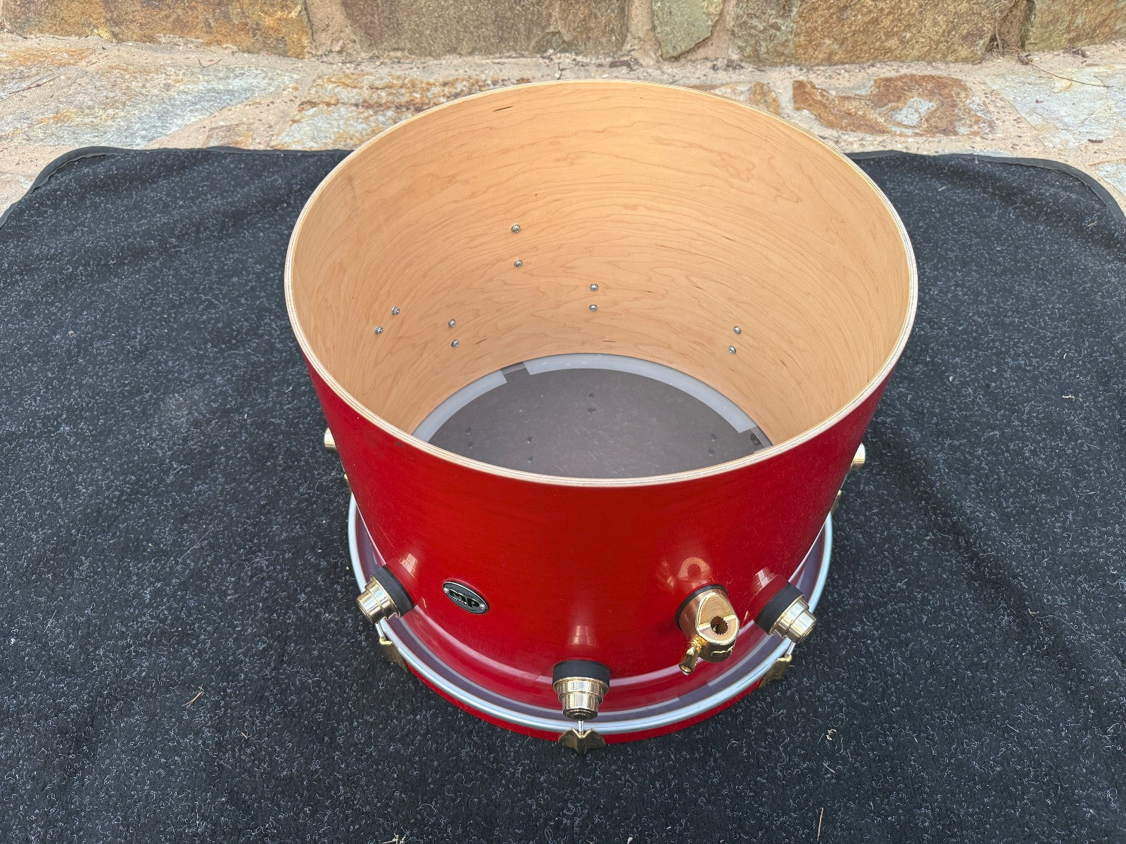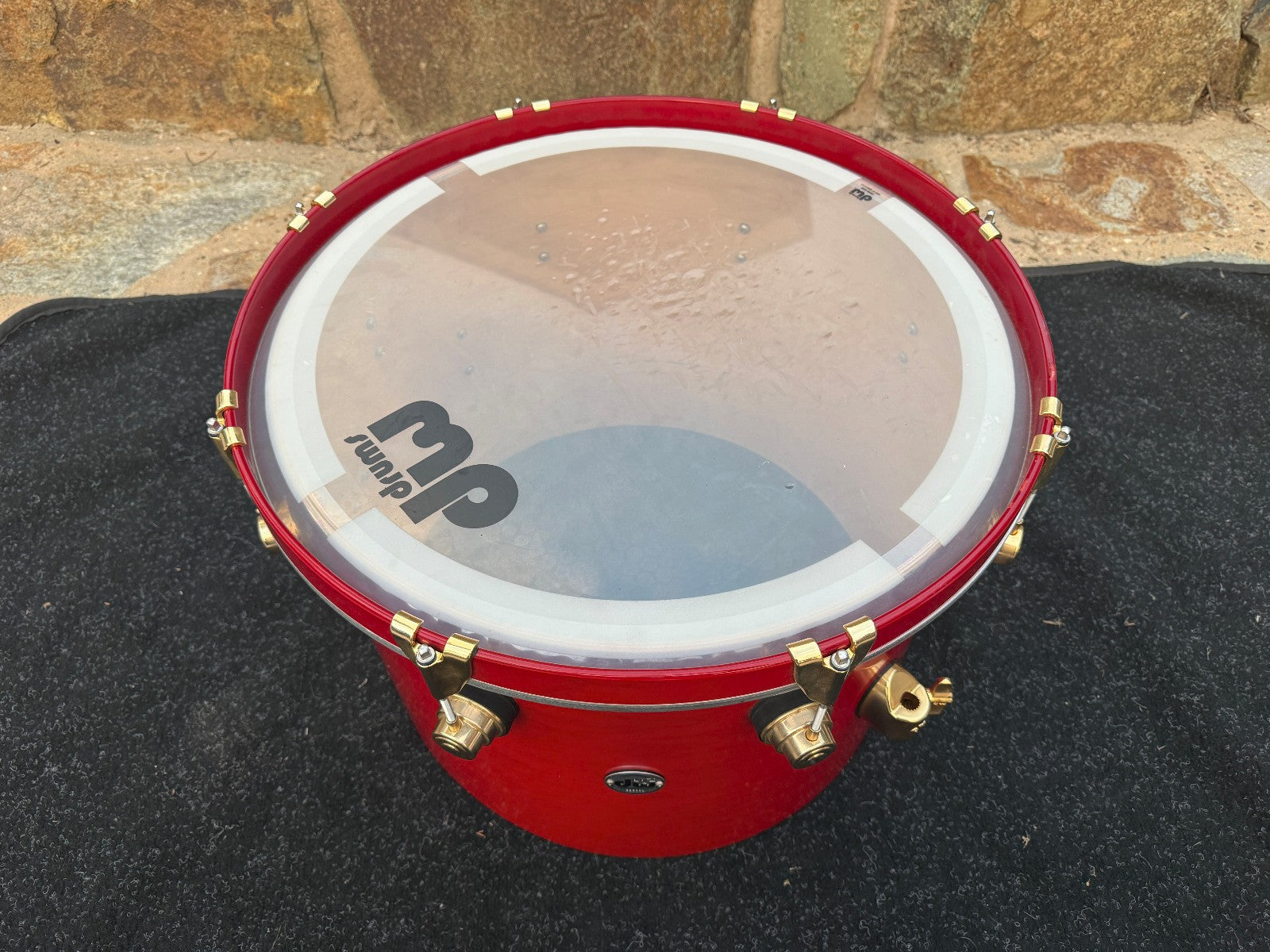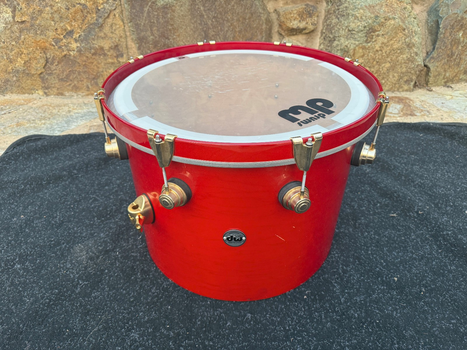 The drum is in VG condition with some normal wear and a few scratches on the shell. You can see the wood grain through the red finish .20" diameter gong shell but uses 22" head.