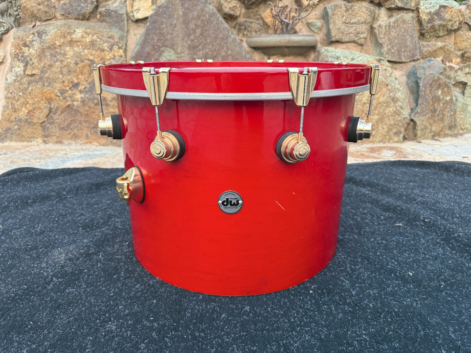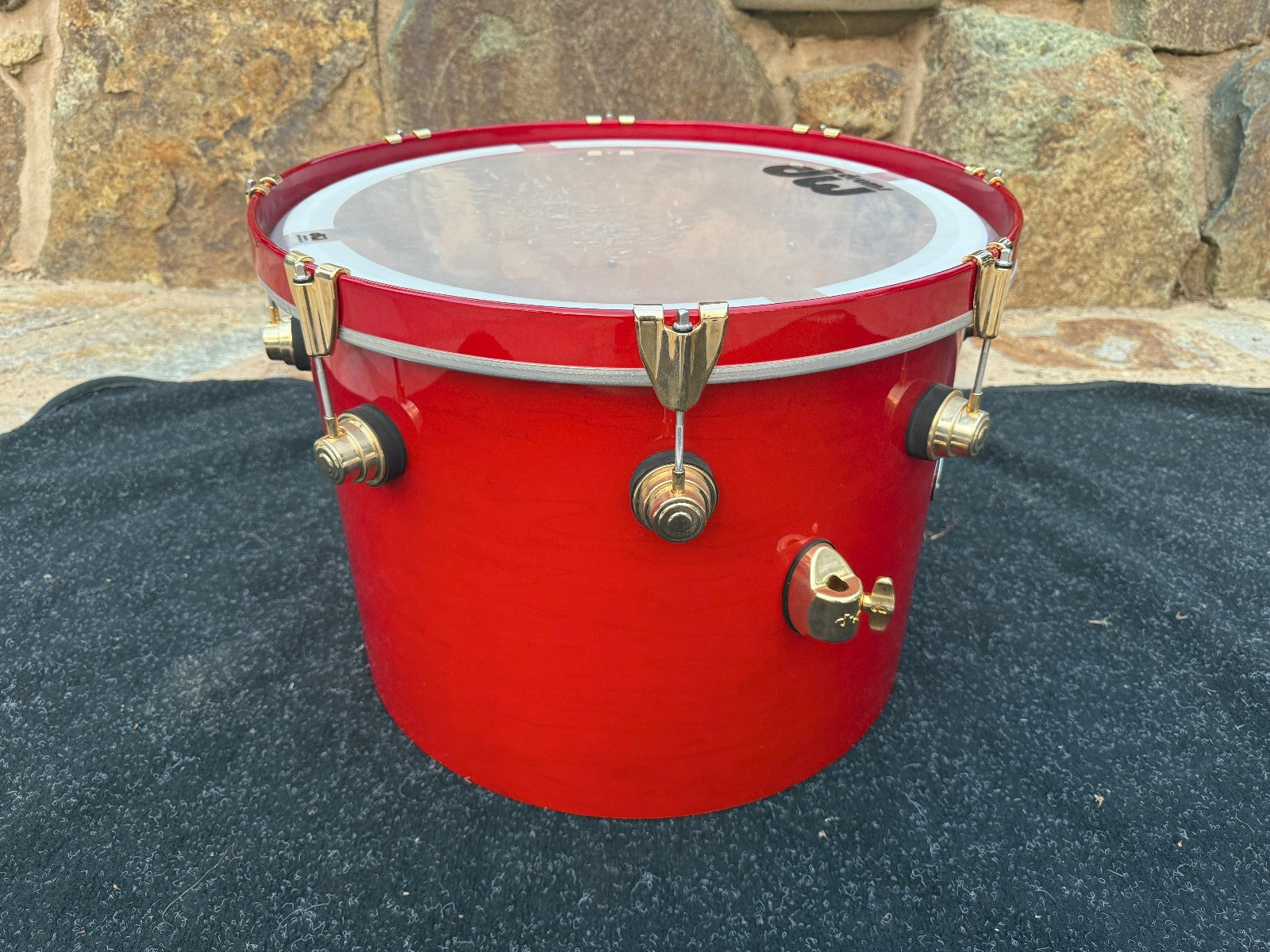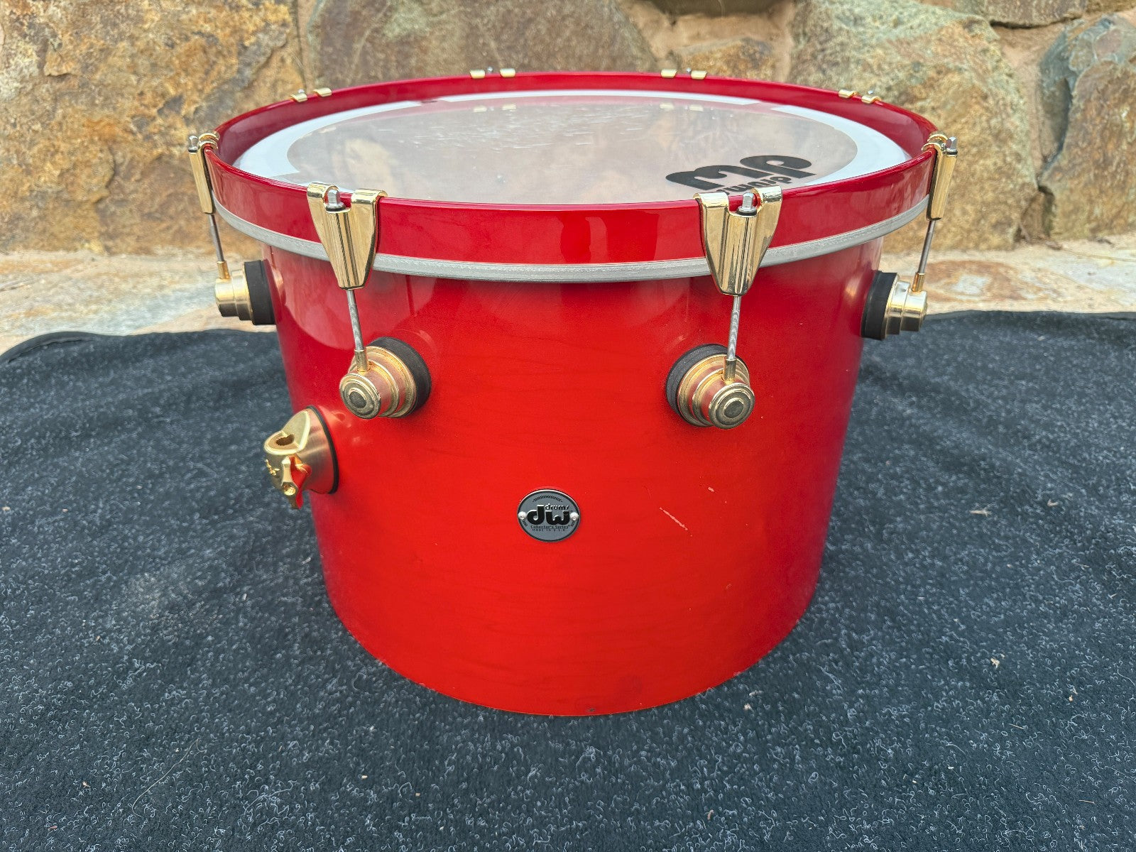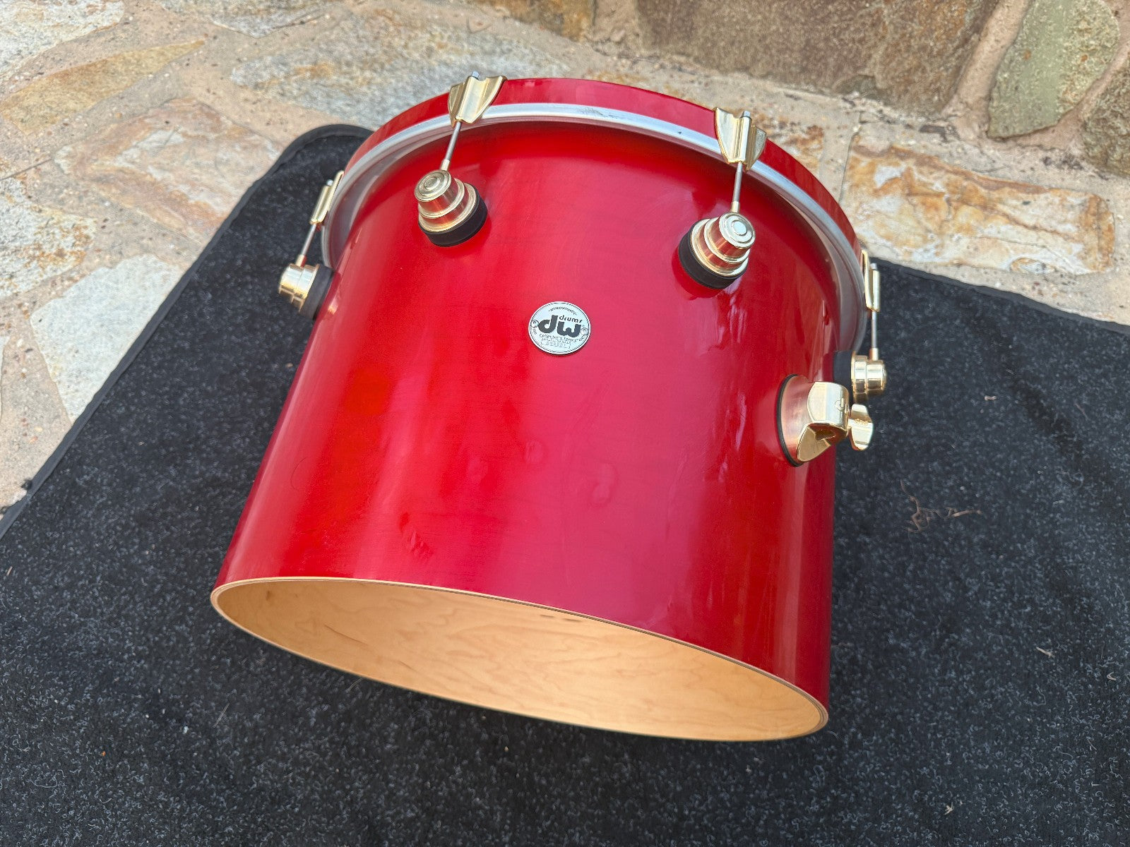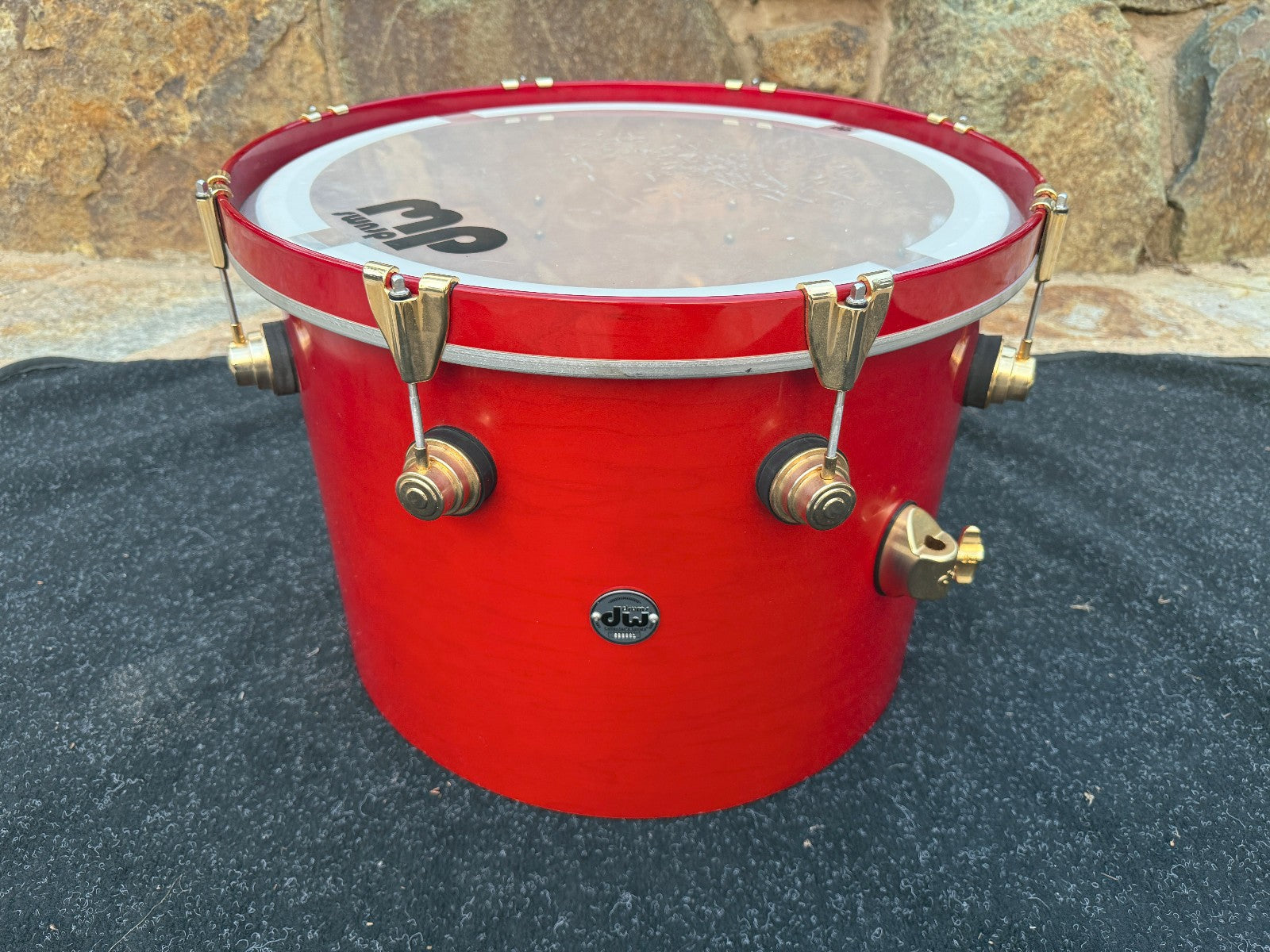 The drum is in VG condition with some normal wear and a few scratches on the shell. You can see the wood grain through the red finish .20" diameter gong shell but uses 22" head.