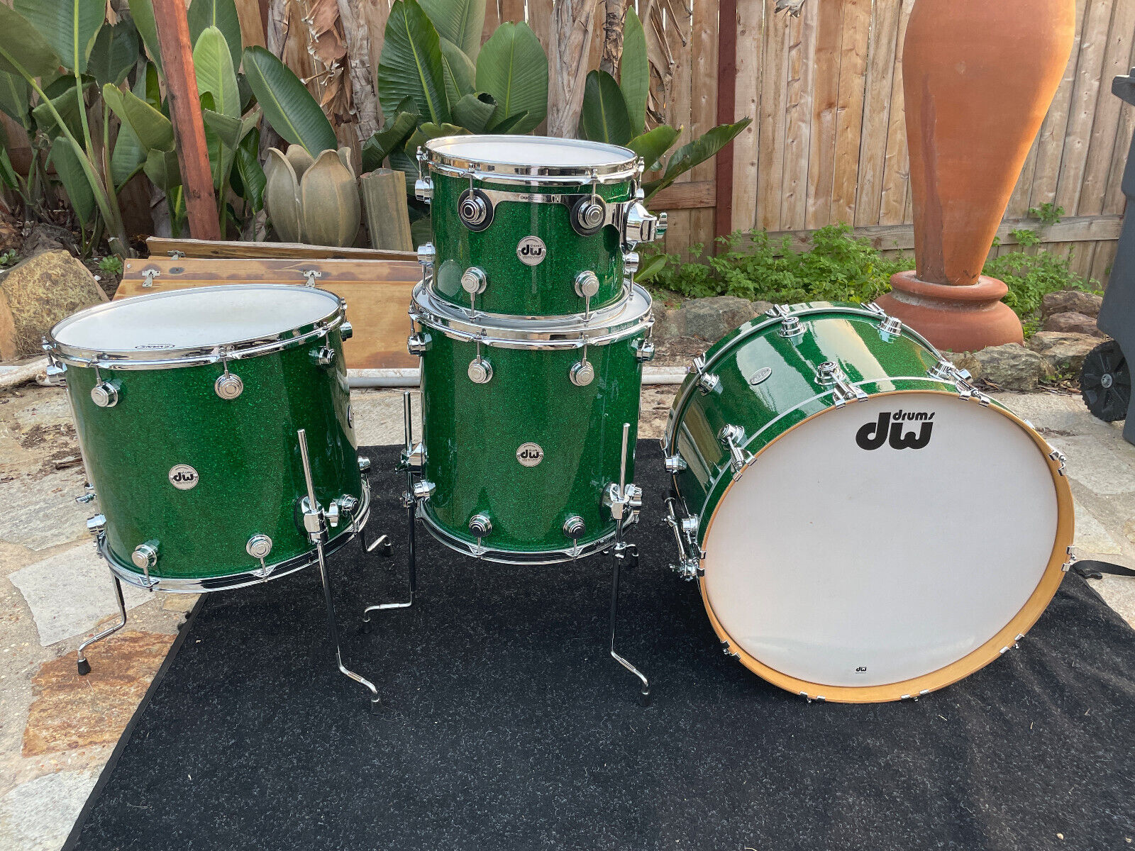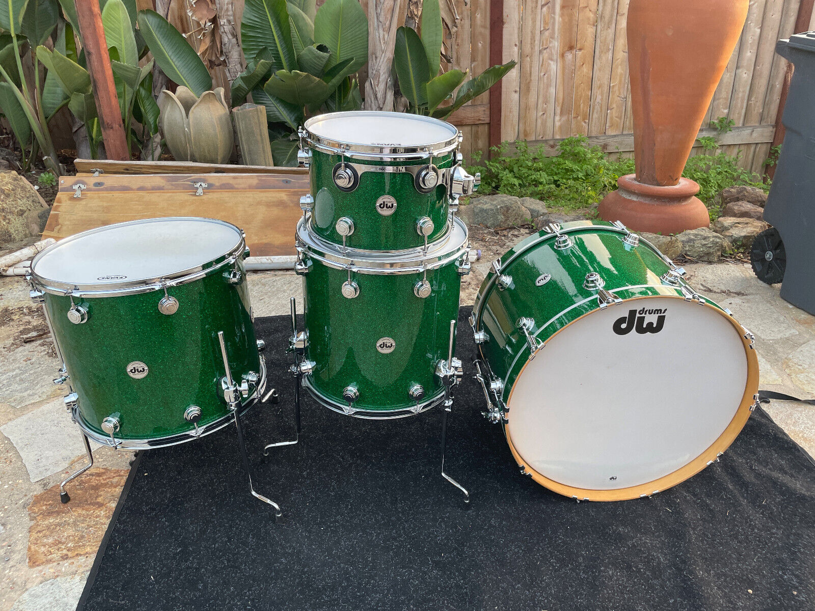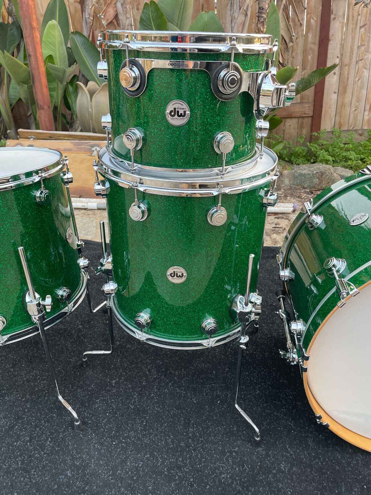 DW Collectors 4pc Green Sparkle Drum Set kit - EXCELLENT