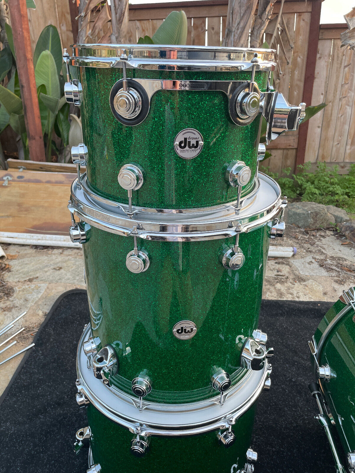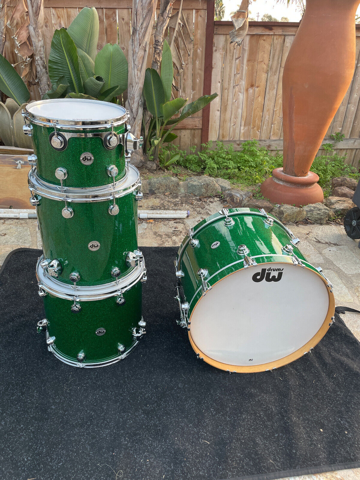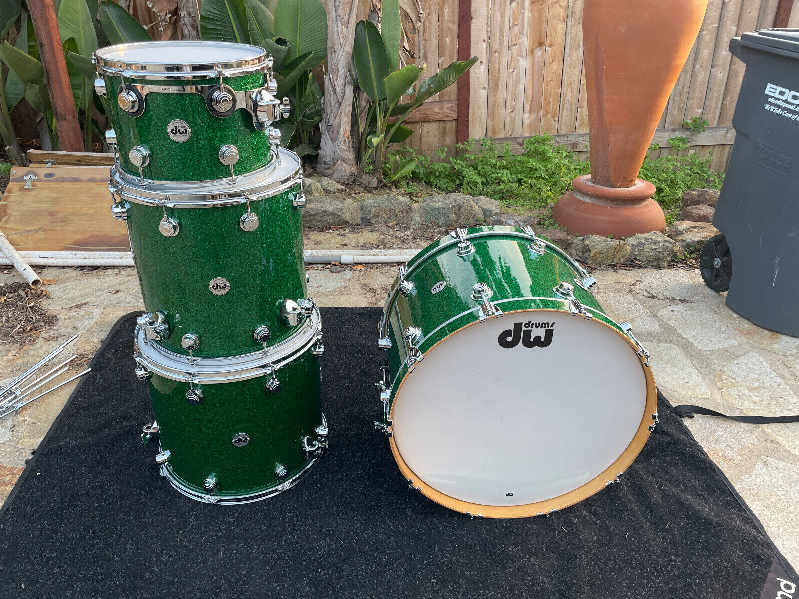 DW Collectors 4pc Green Sparkle Drum Set kit - 24x16,13x9,16x16,18x16 EXCELLENT