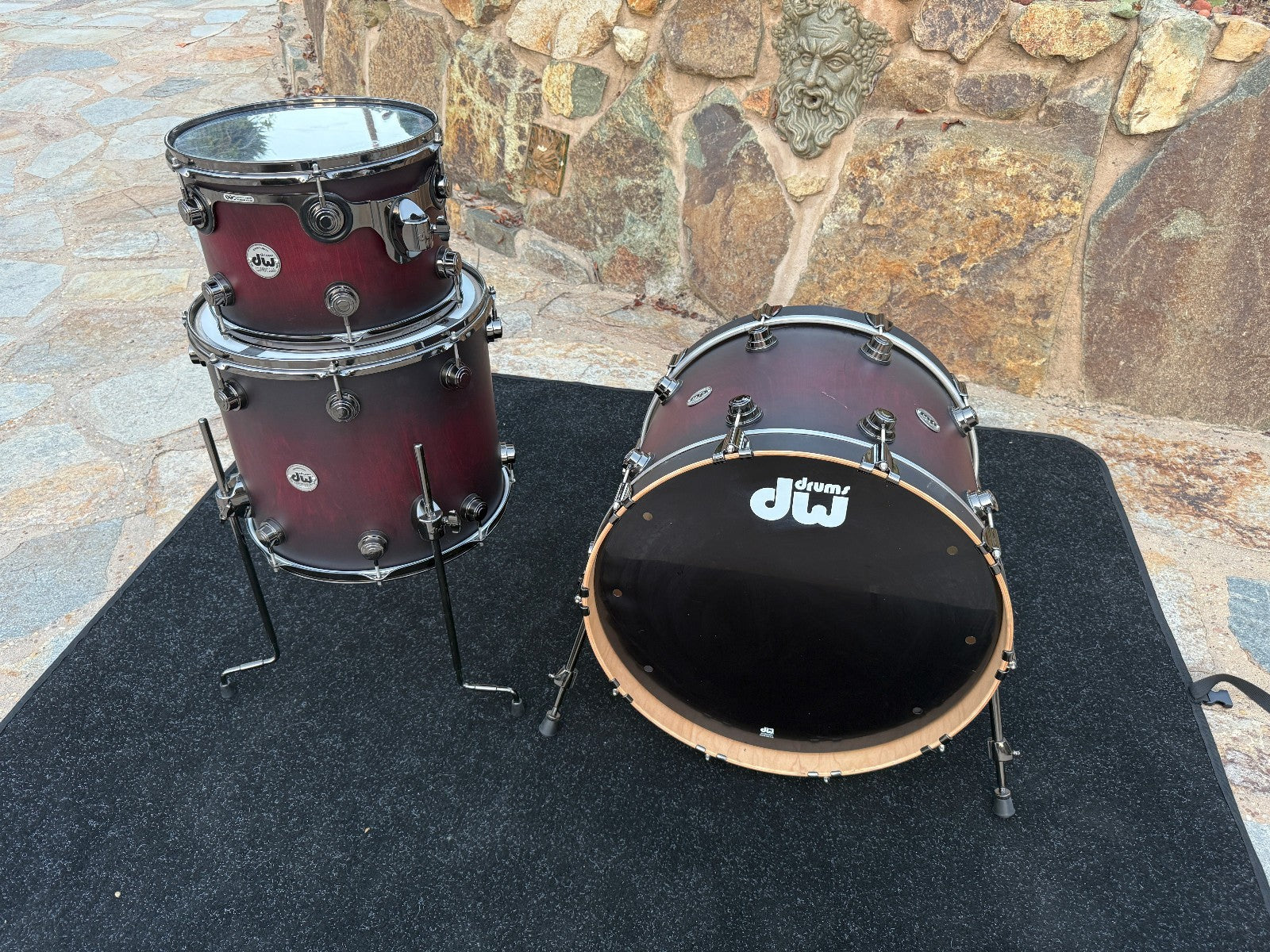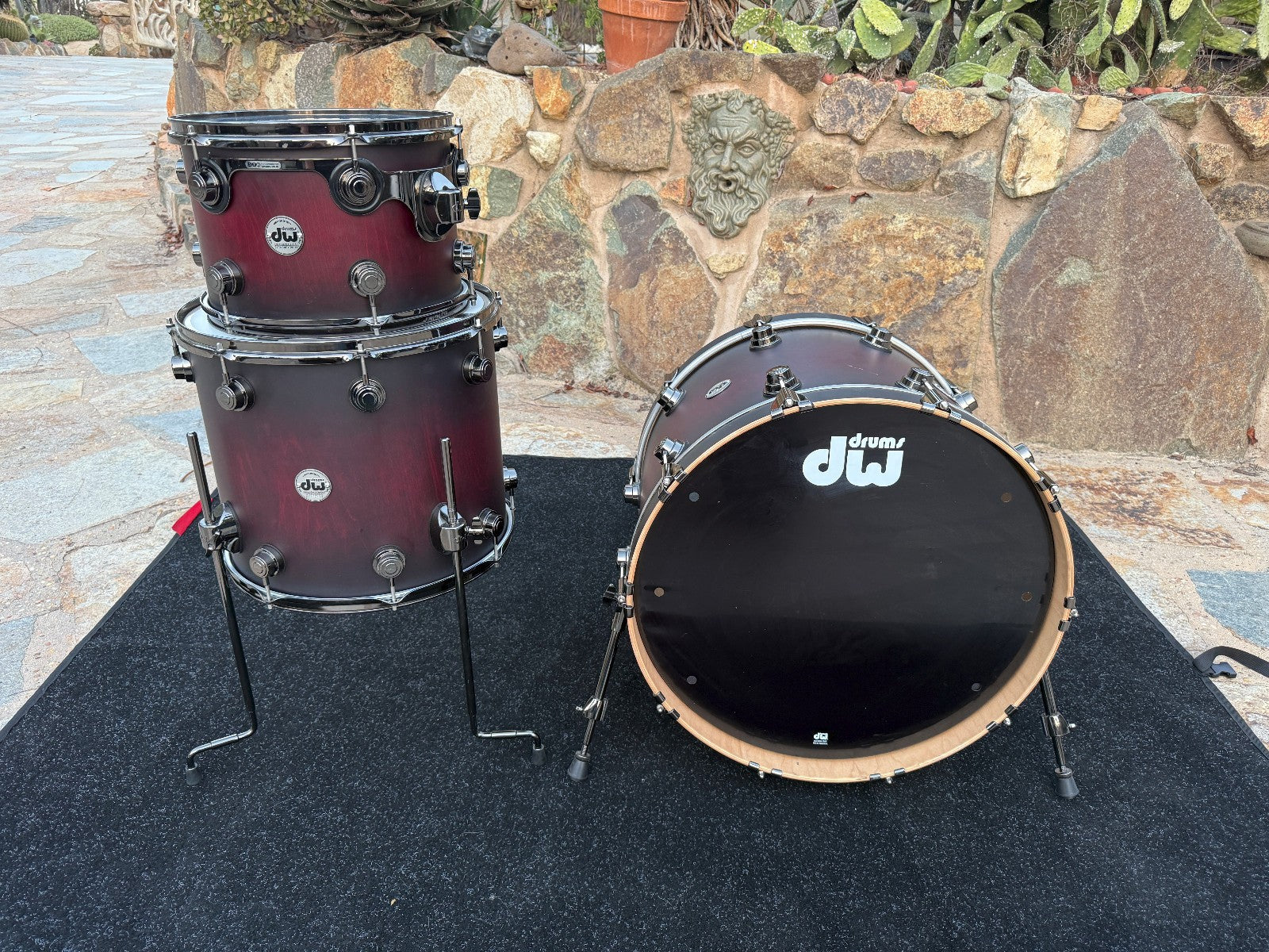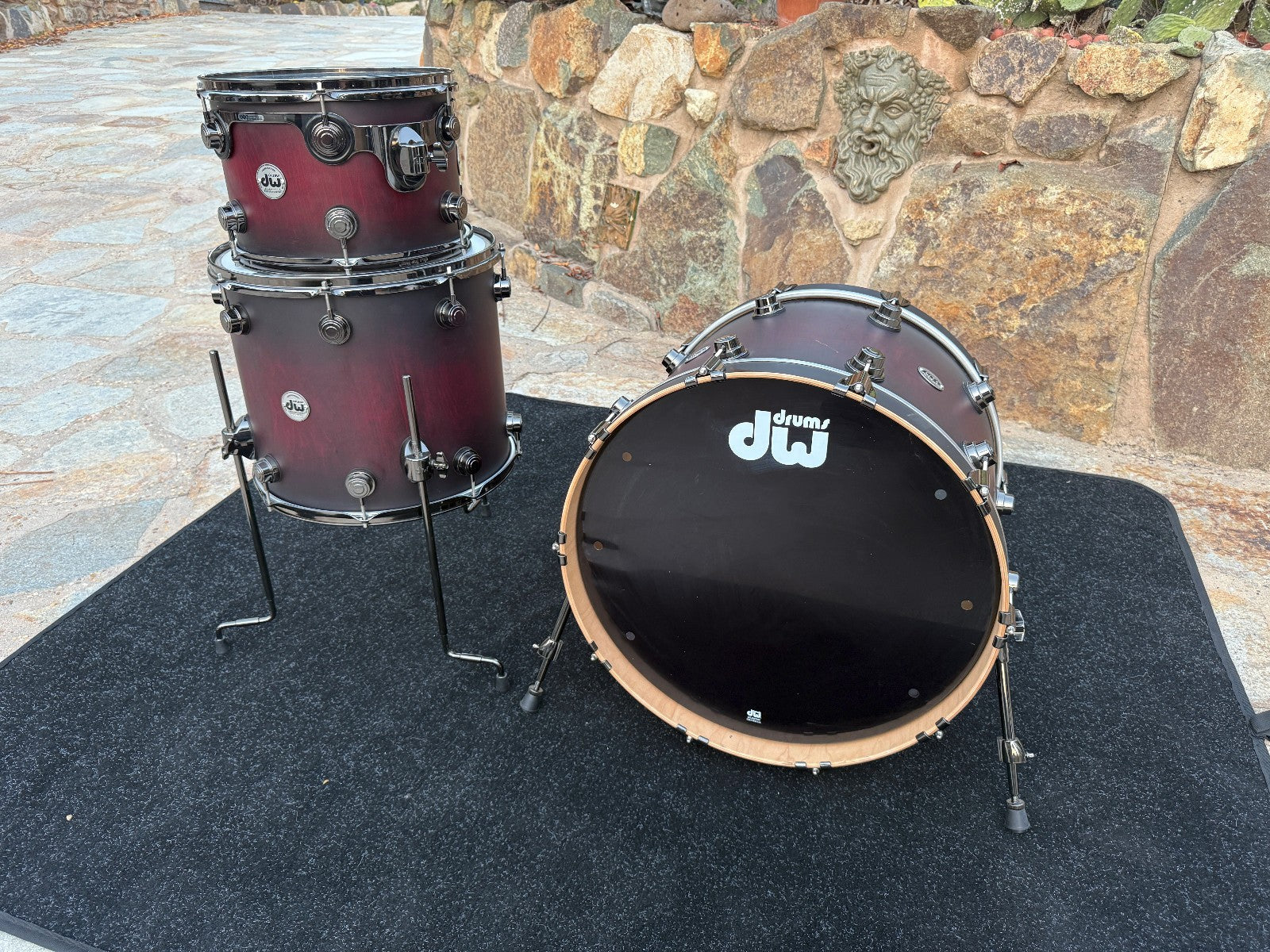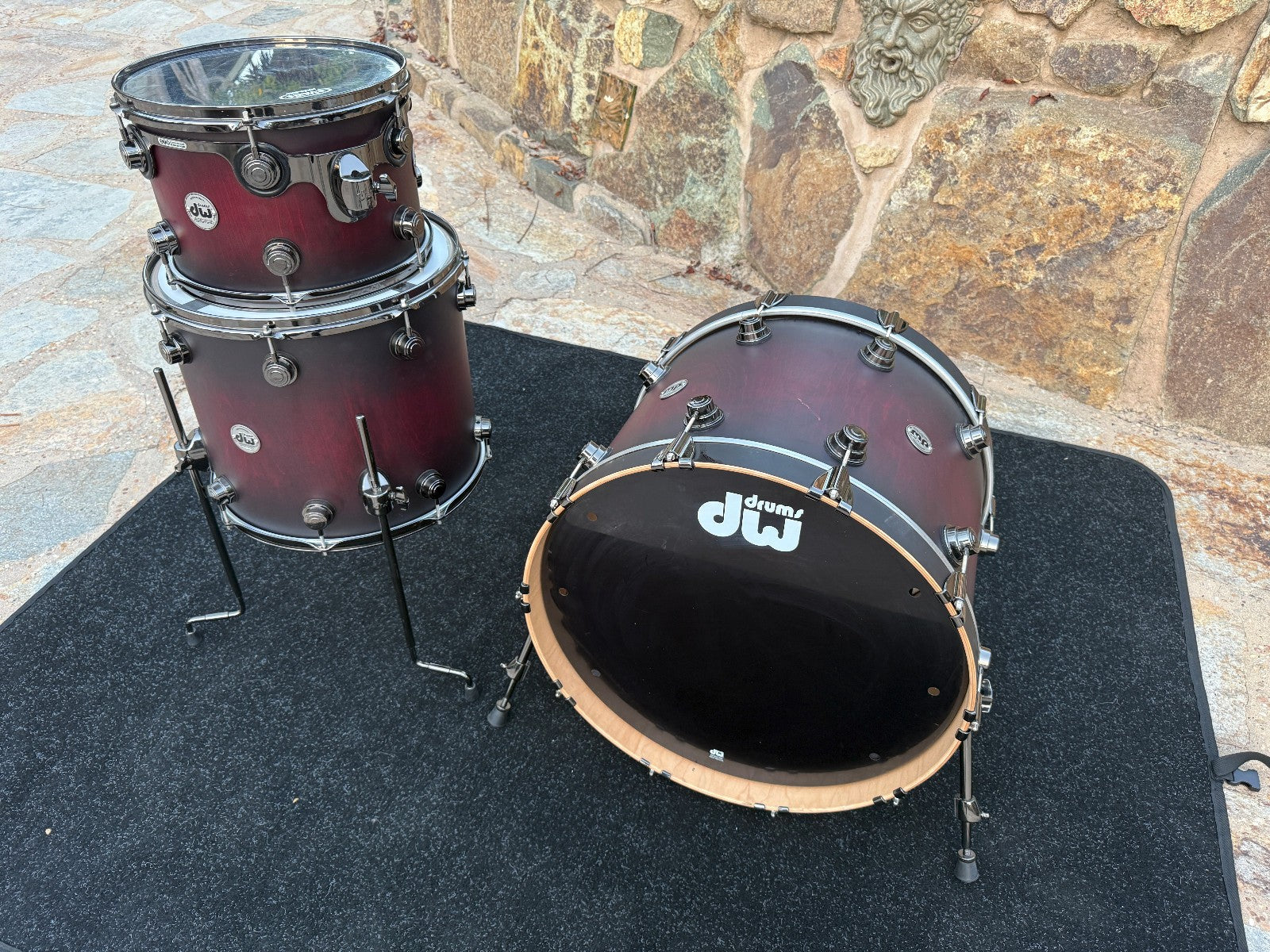 DW Collectors Pure Maple Cherry to Black Burst Satin Chrome 3 piece Drum Set kit