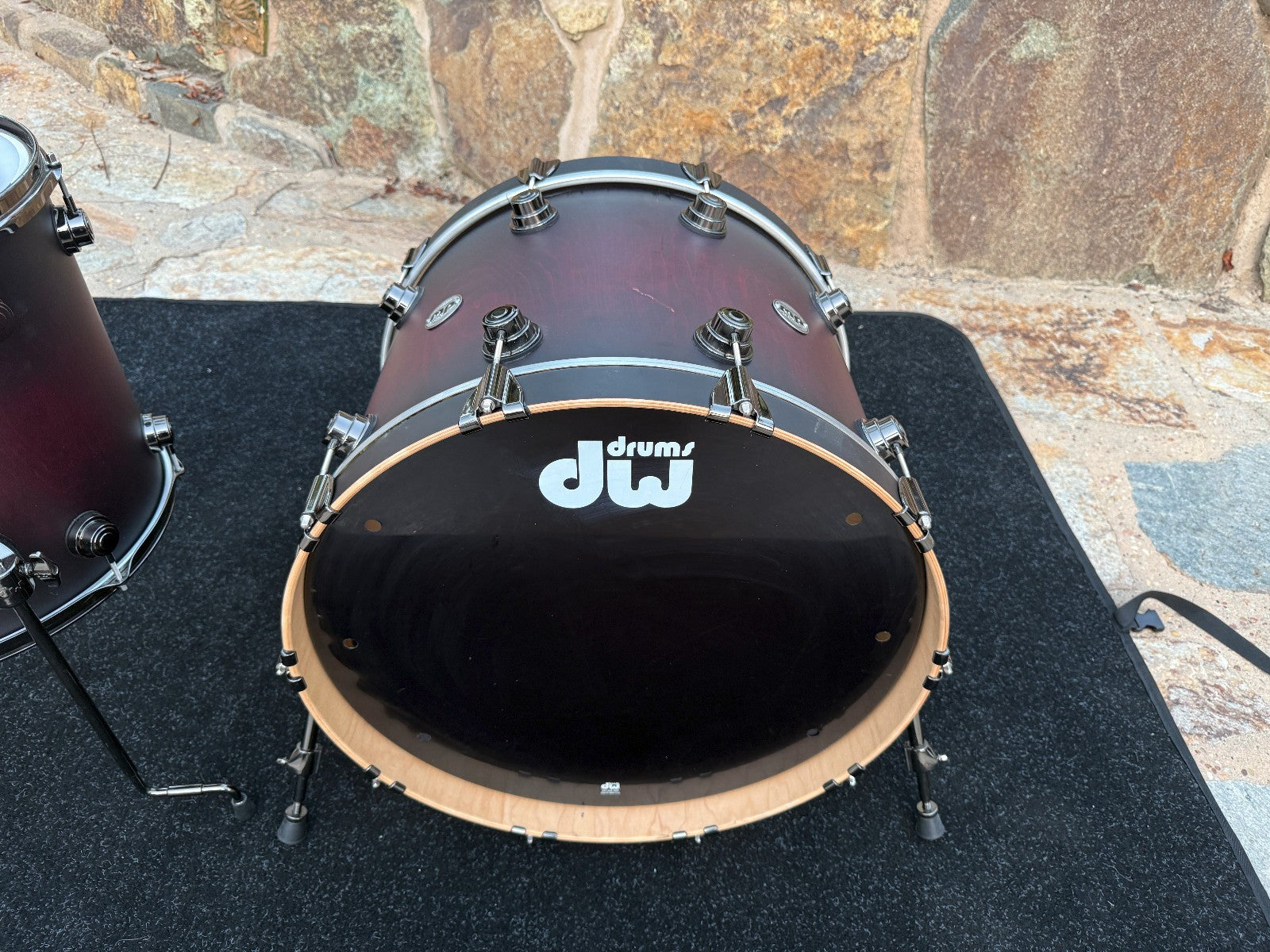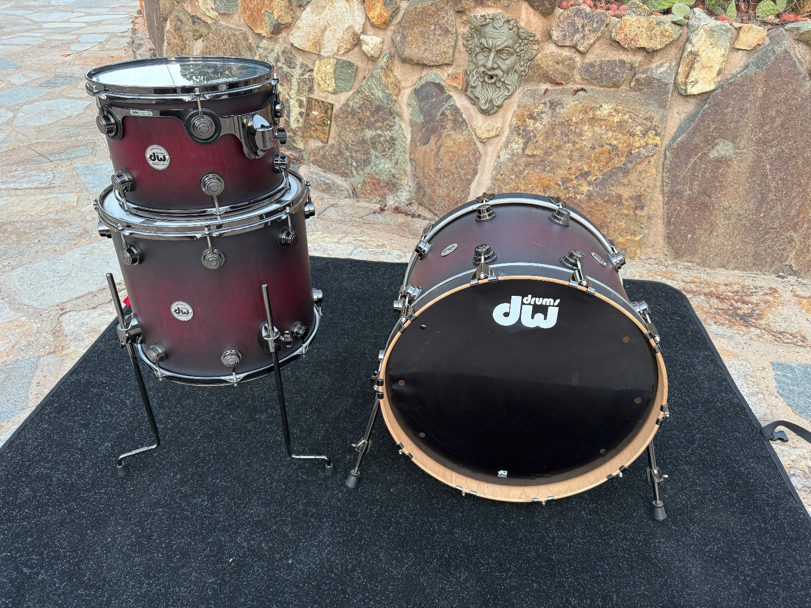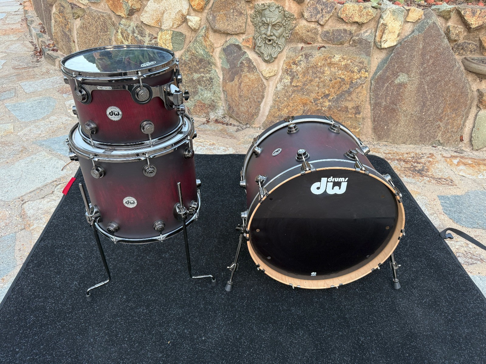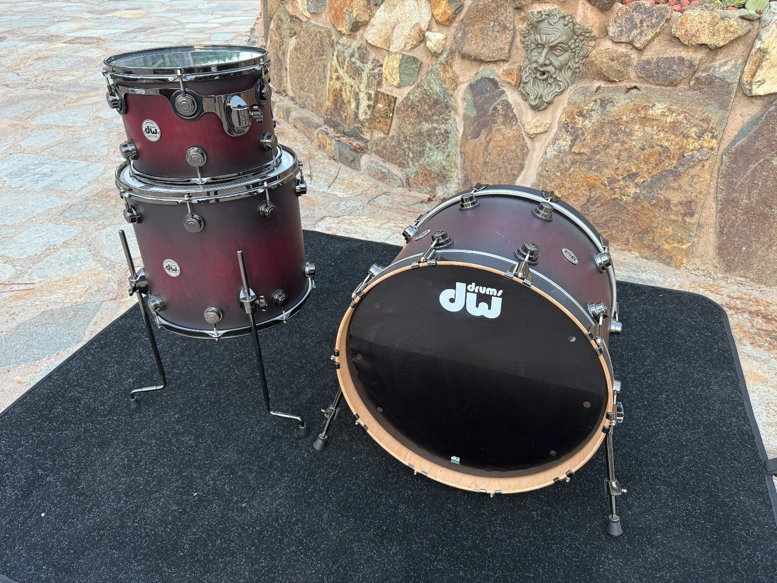 DW Collectors Pure Maple Cherry to Black Burst Satin Chrome 3 piece Drum Set kit