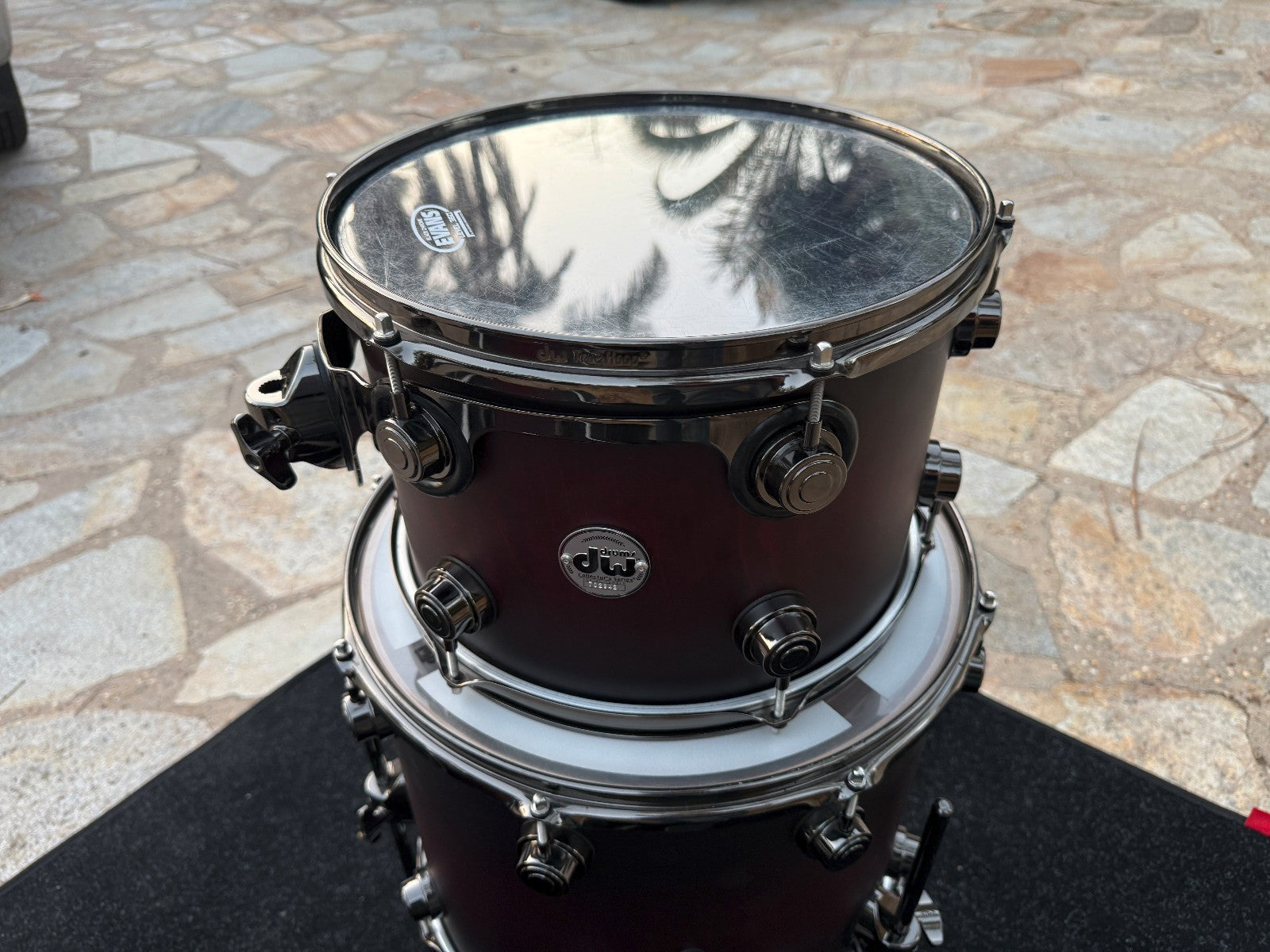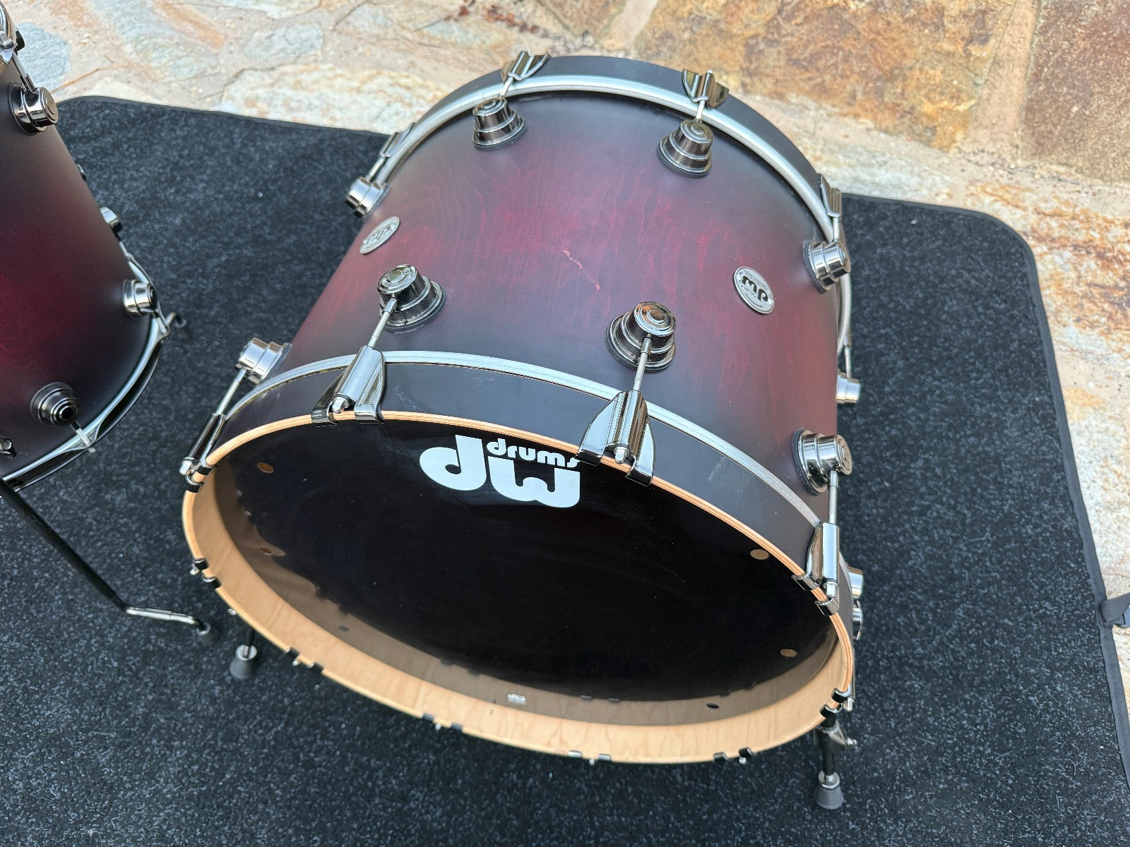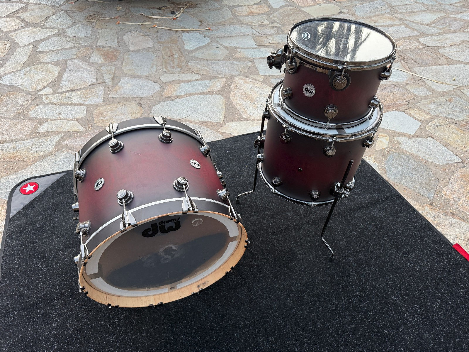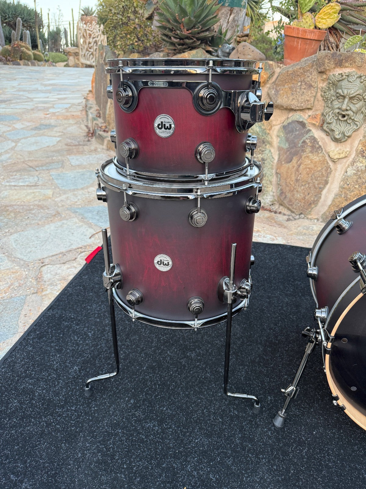 DW Collectors Pure Maple Cherry to Black Burst Satin Chrome 3 piece Drum Set kit