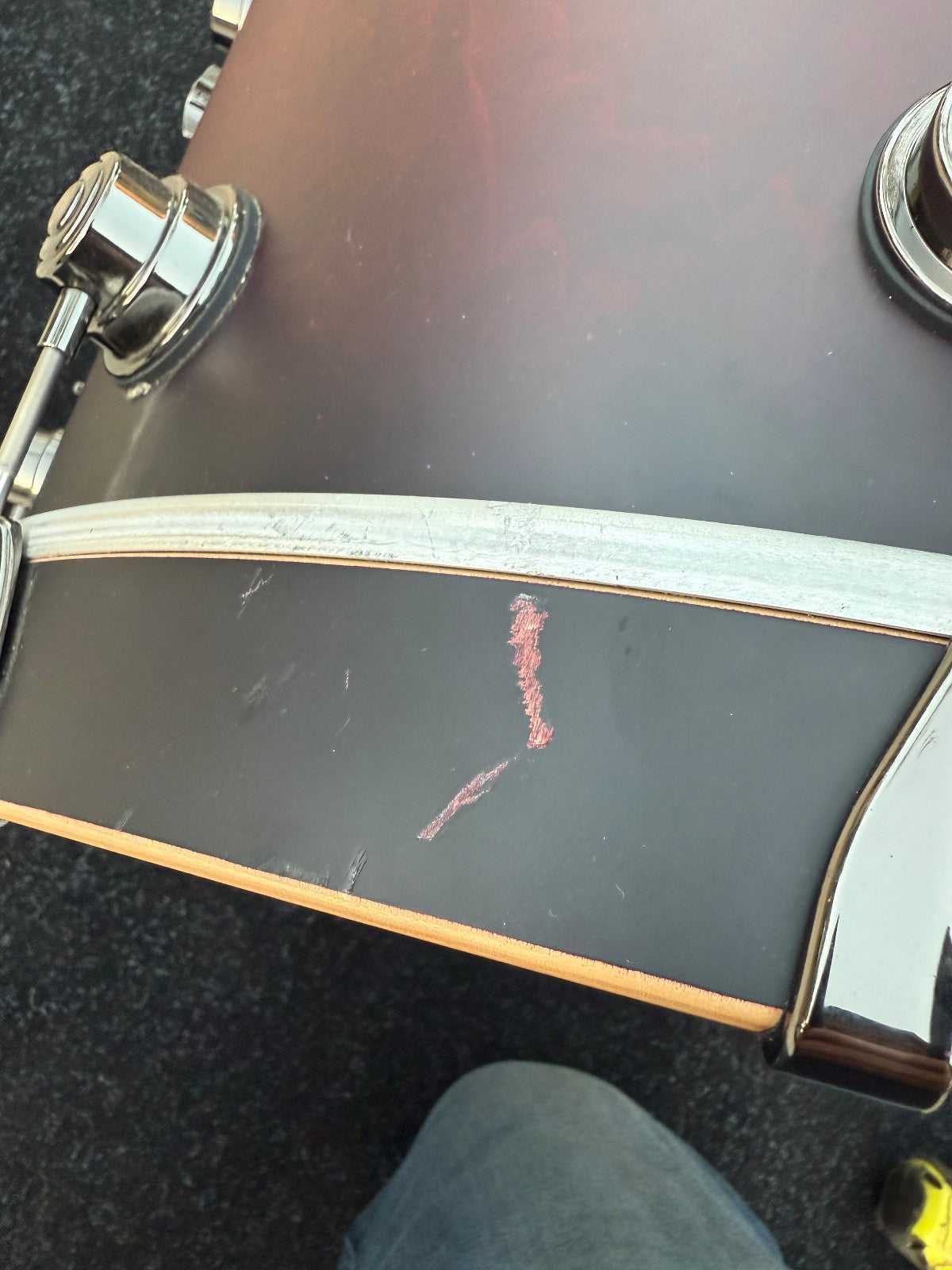 Condition wise there are two noticable scratches on the bass. One on the top of the bass and one on a hoop but otherwise looks fine. Some otherwise normal wear and use. See pictures for condition.