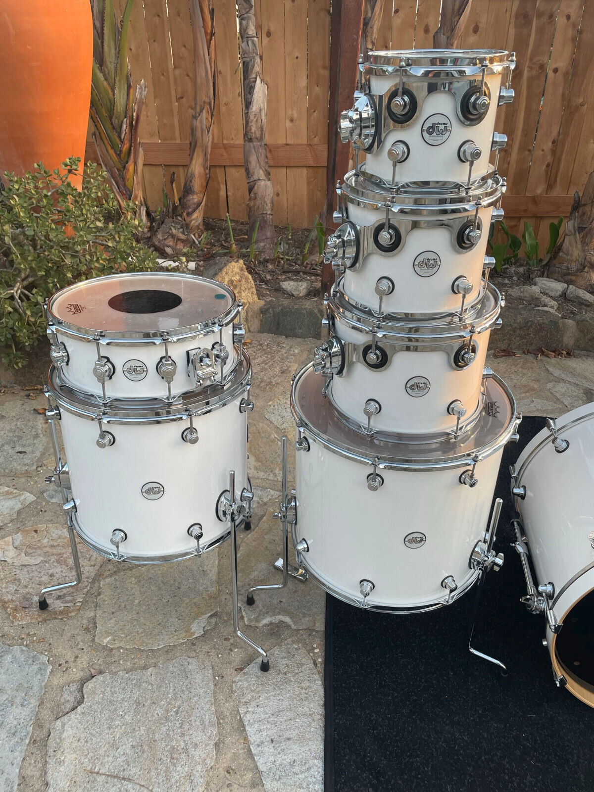DW Design Series Drums 8pc Double Bass Drum Kit Maple Gloos White - EXCELLENT