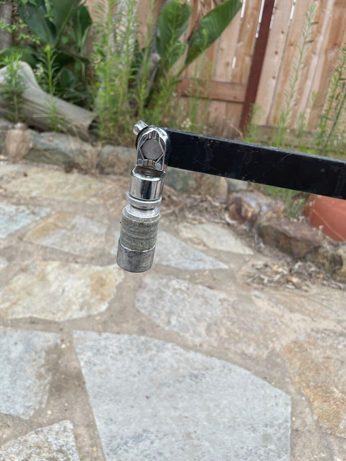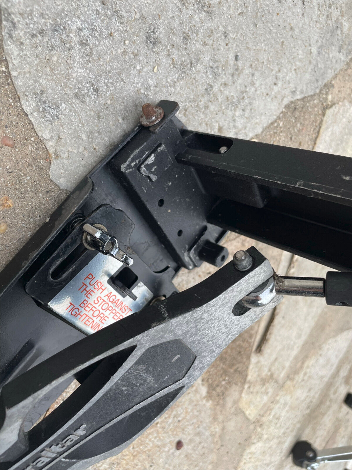 Fair condition. Pitting on stand. Rust. Stains and cosmetics on footboard. Includes attachment arm but fair condition.