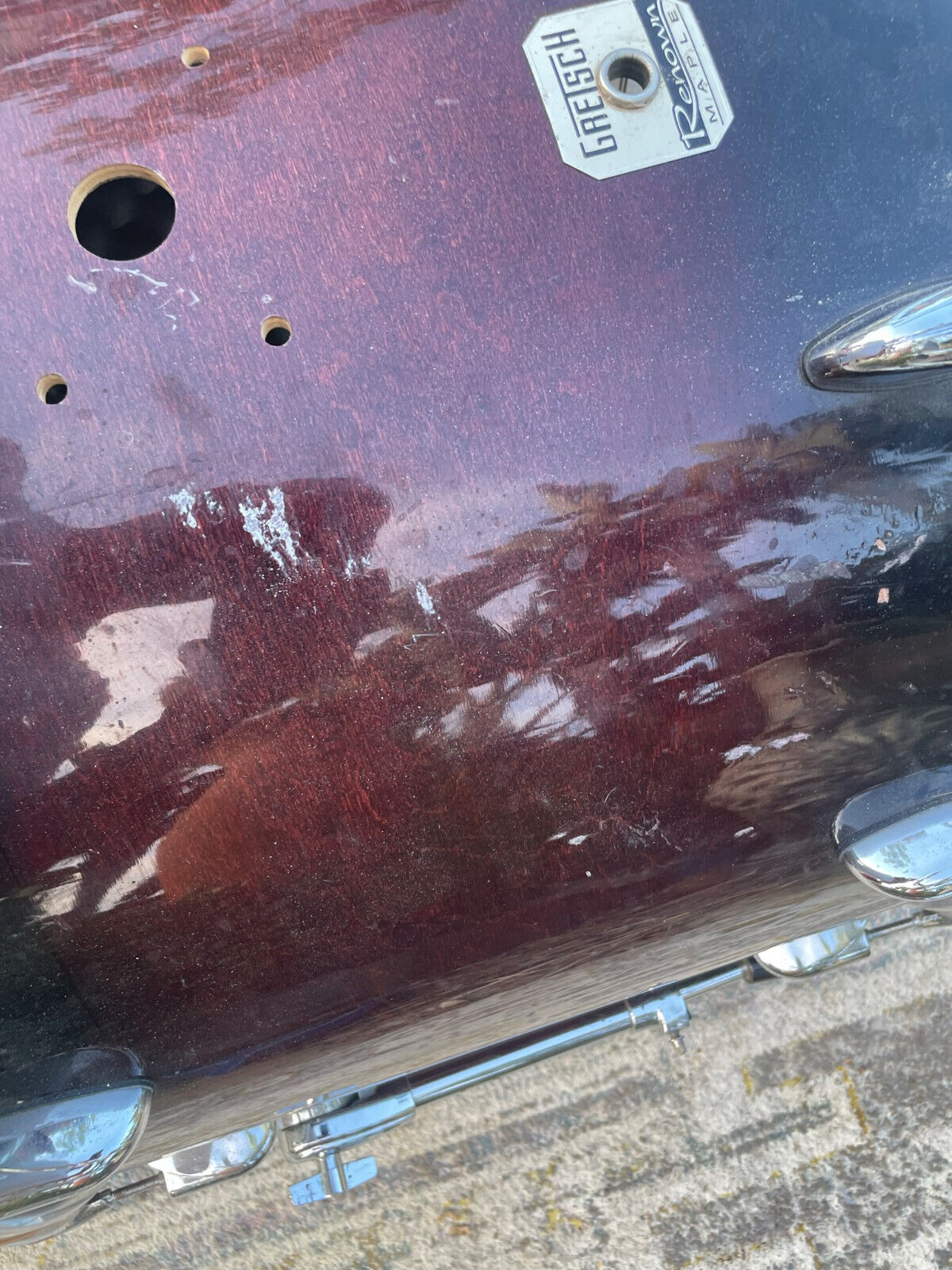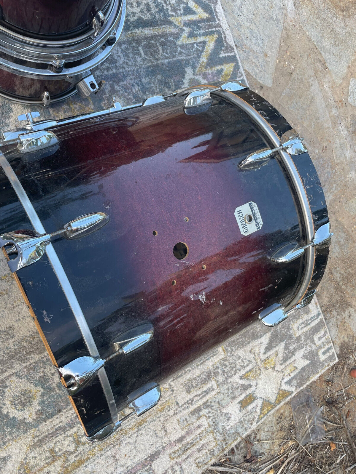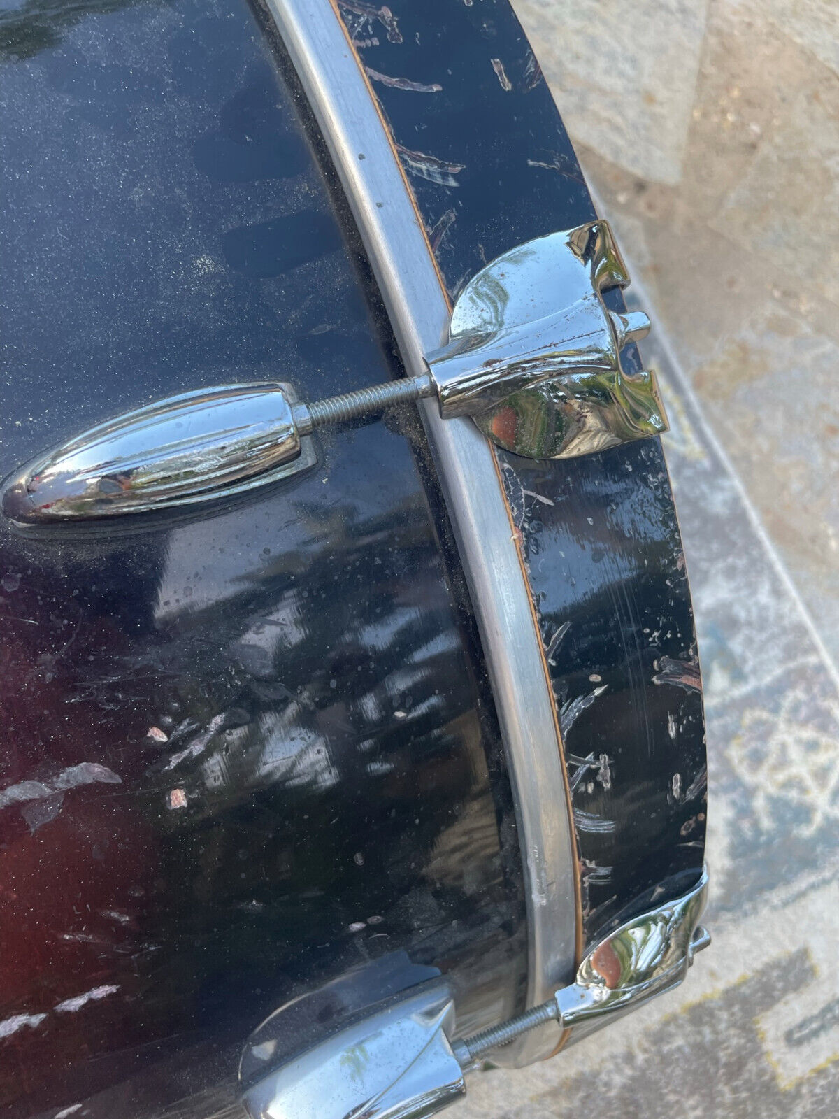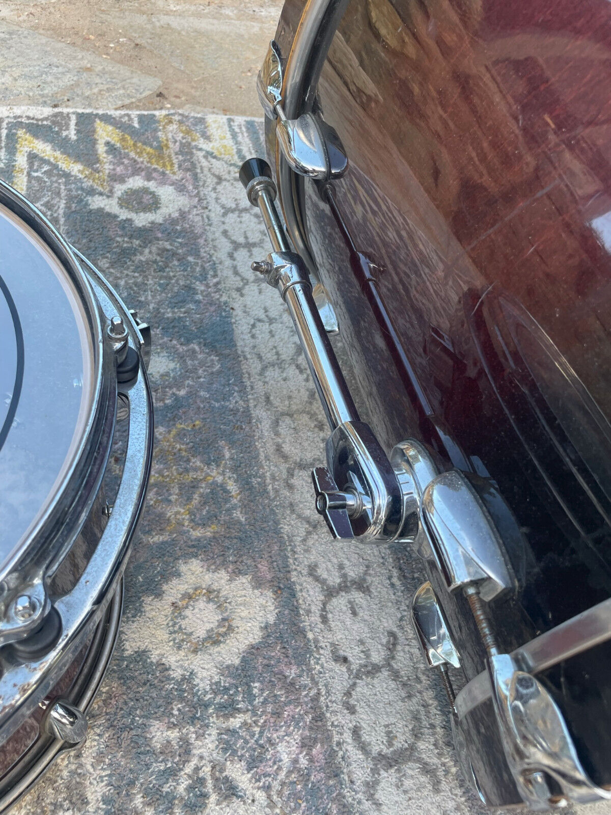 These are great sounding drums but the shells are in fair cosmetic condition. Scuffs - scratches - marks - blemishes. Inside shells are fine though but yeah its pretty worn cosmetically. Also missing mounting bracket. Some flaking on the chrome . See pictures for condition
