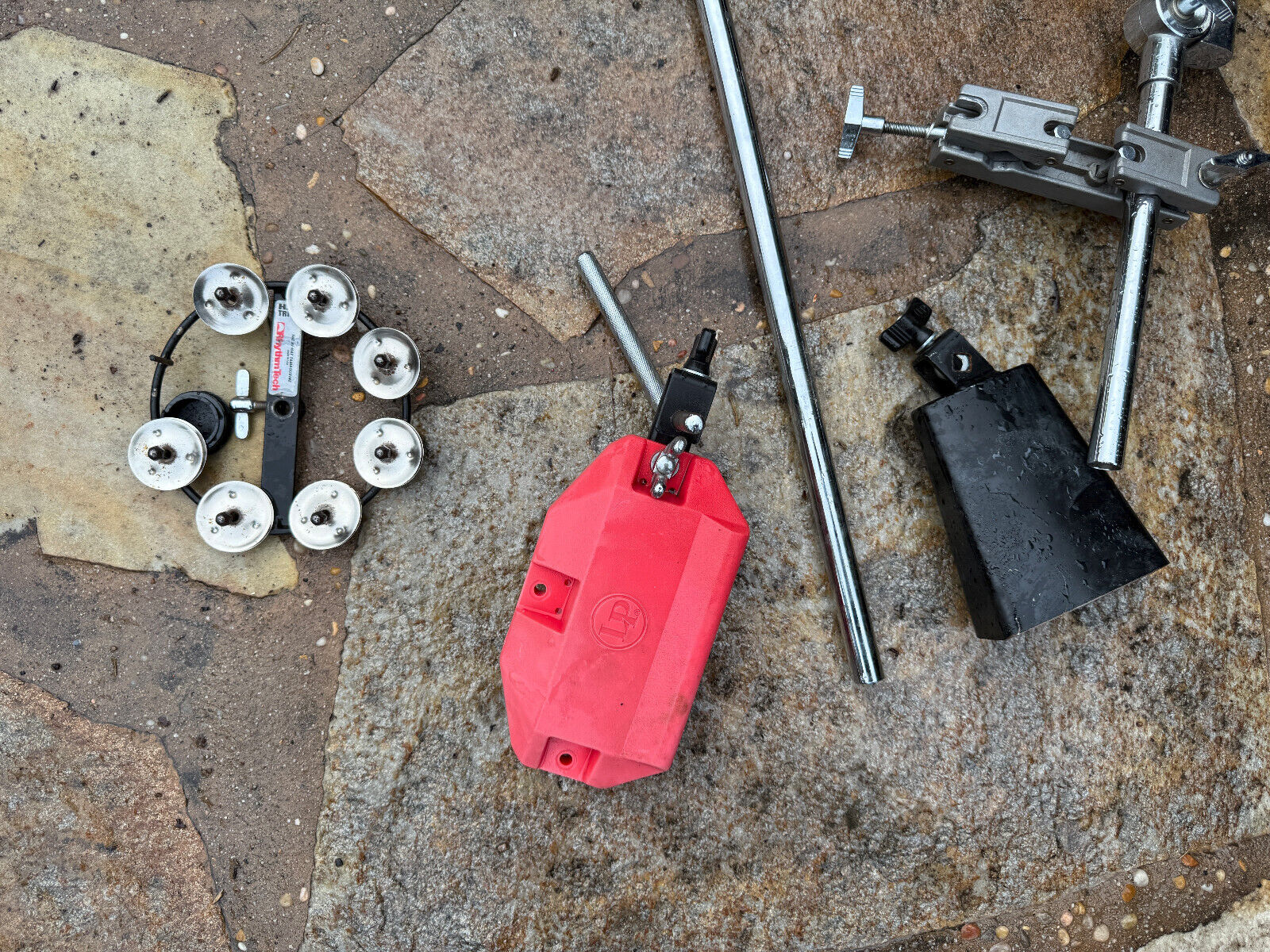 LP Cowbell Block , Hihat , Percussion Accesory LOT Cymbal Arm Tops Rack Arms