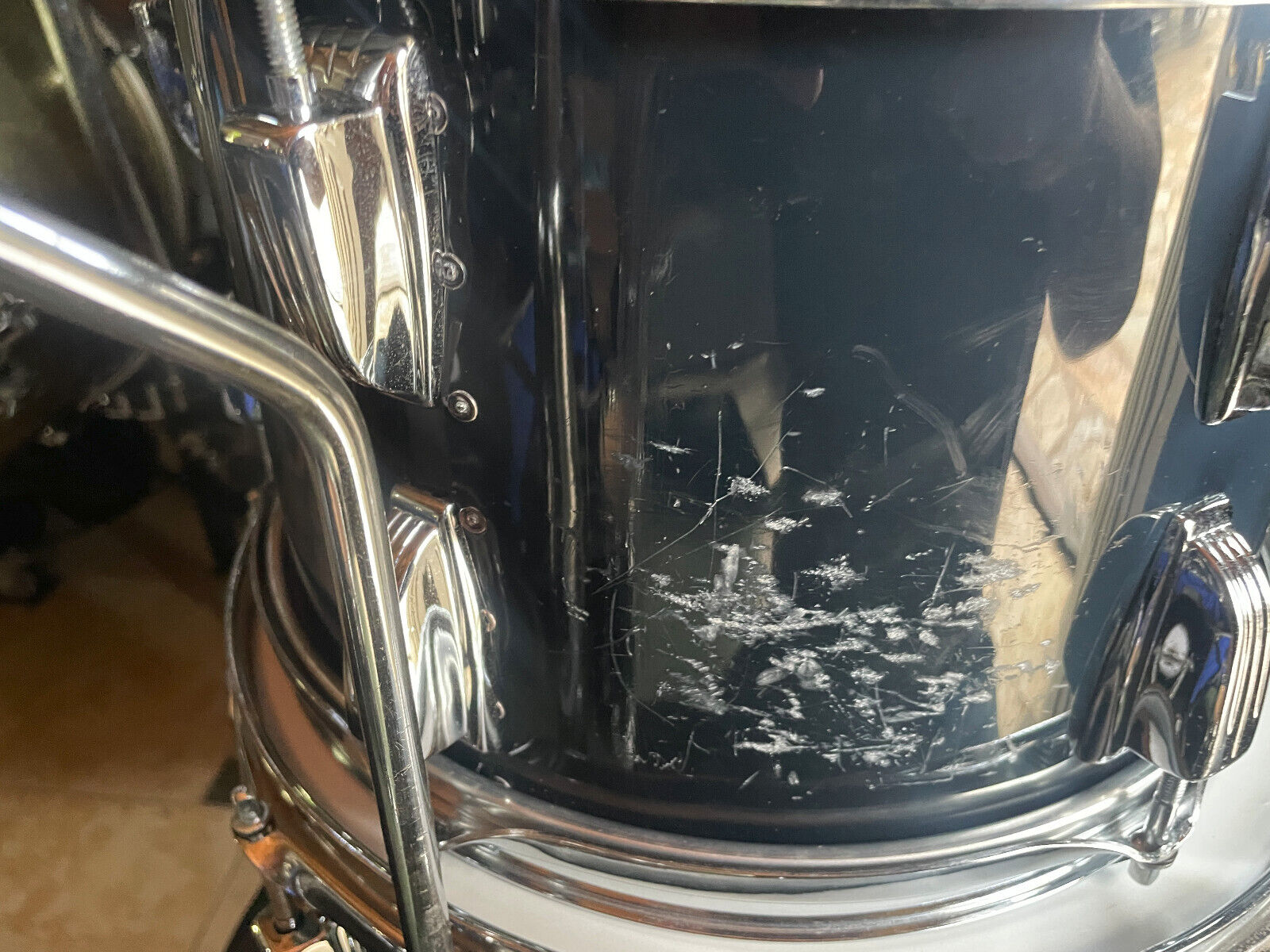 The drums are overall in VG condition with the exception there is a large rash spot on the 12". This could be kept as is or easily can be wraped over.