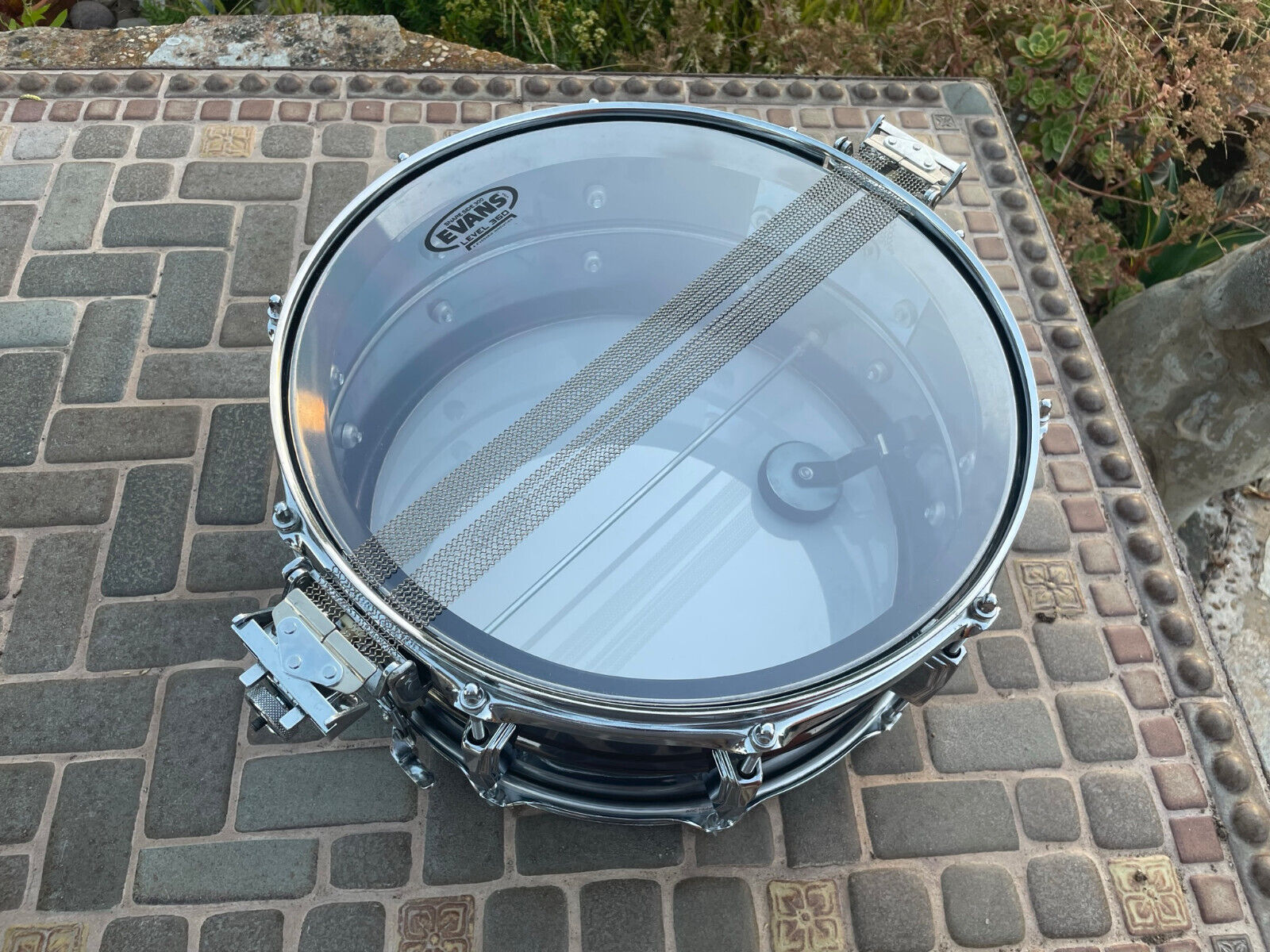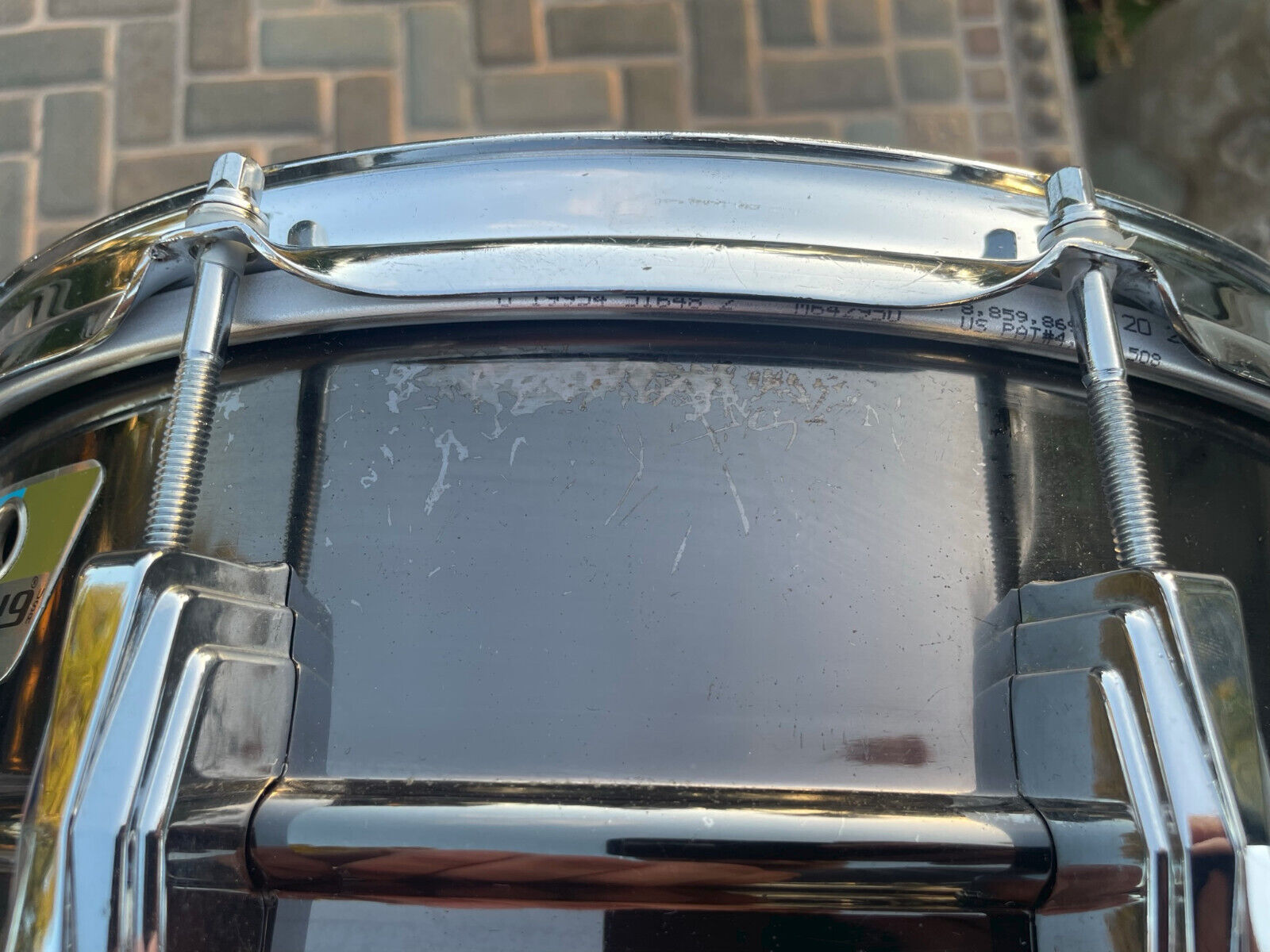 Condition wise the snare looks good. The main thing condition wise there is some age on the black shell wearing off mostly along the top edge of the shell (see pictures) but in my opinion you cant really tell from looking up top or unless your looking close up. Other than that some normal wear and marks on hoops etc. Everything is structurally intact
