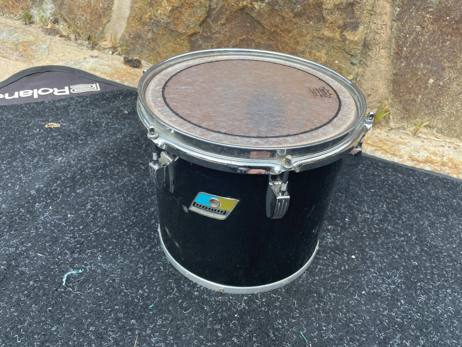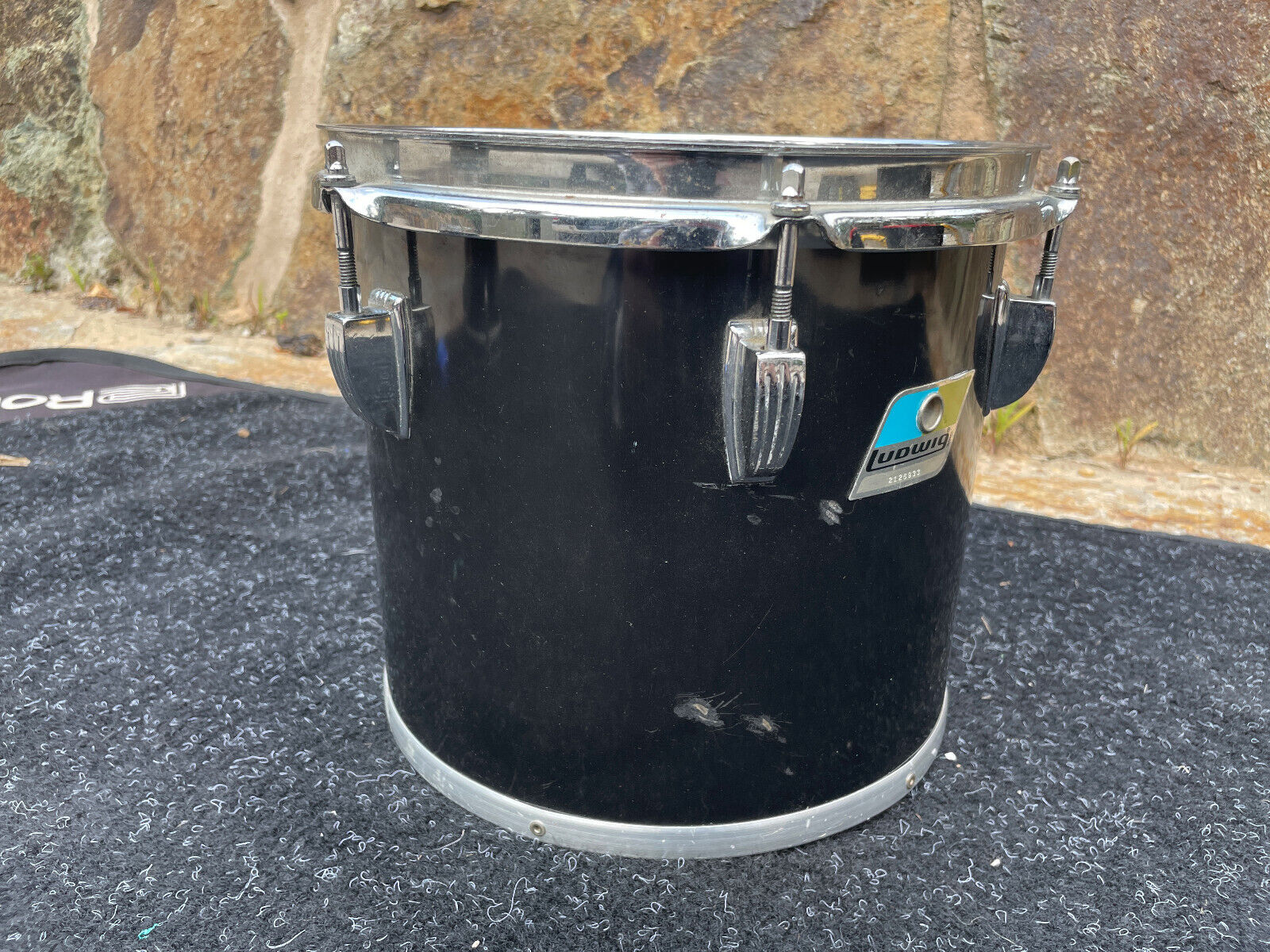 Ludwig Black Cortex 70's 10" Concert Tom for drum set kit - Blue Olive Badge b/o