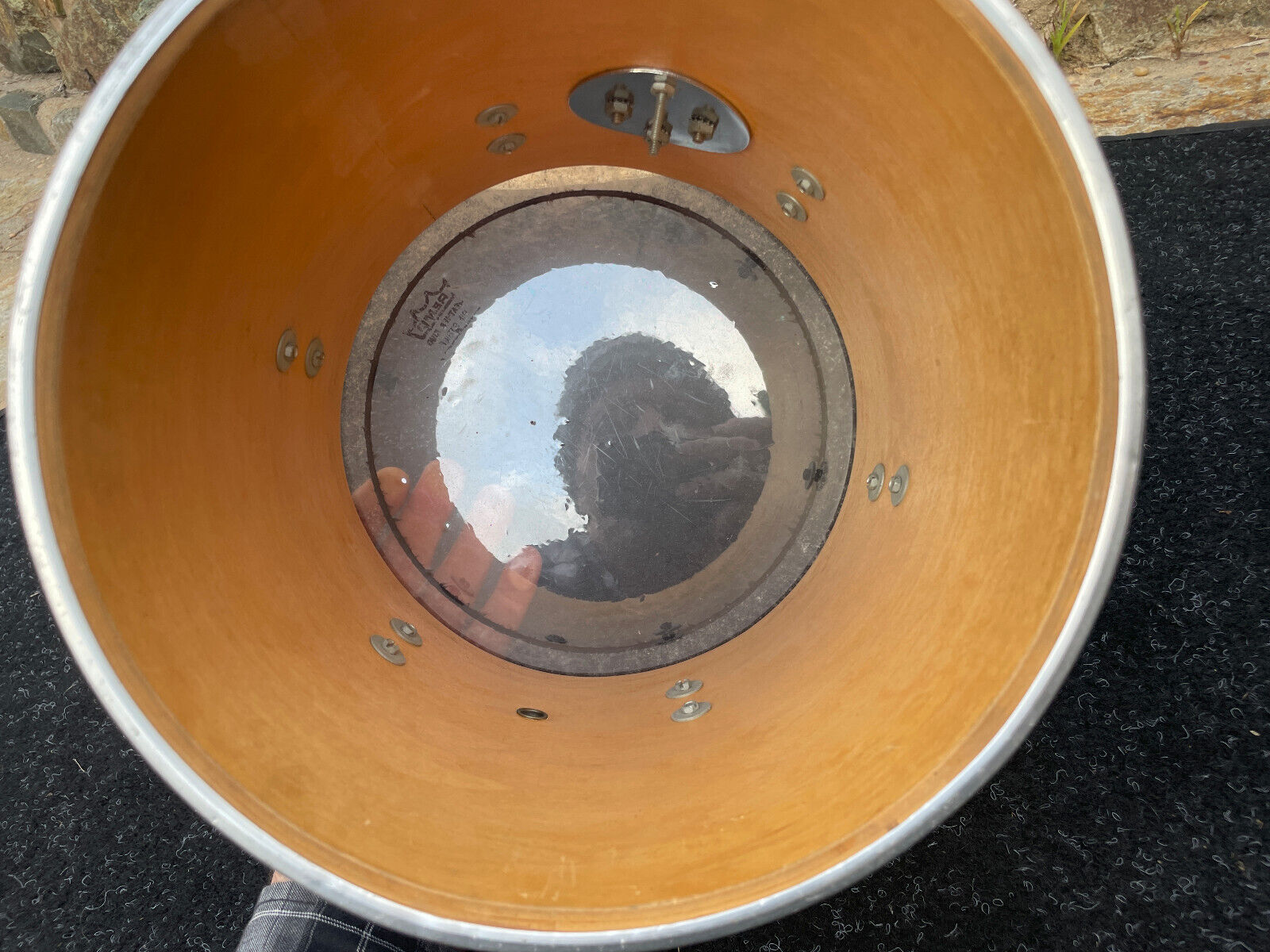 The drum has several scratches/ normal wear imperfections and also has rust on the hoops / lugs / chrome .