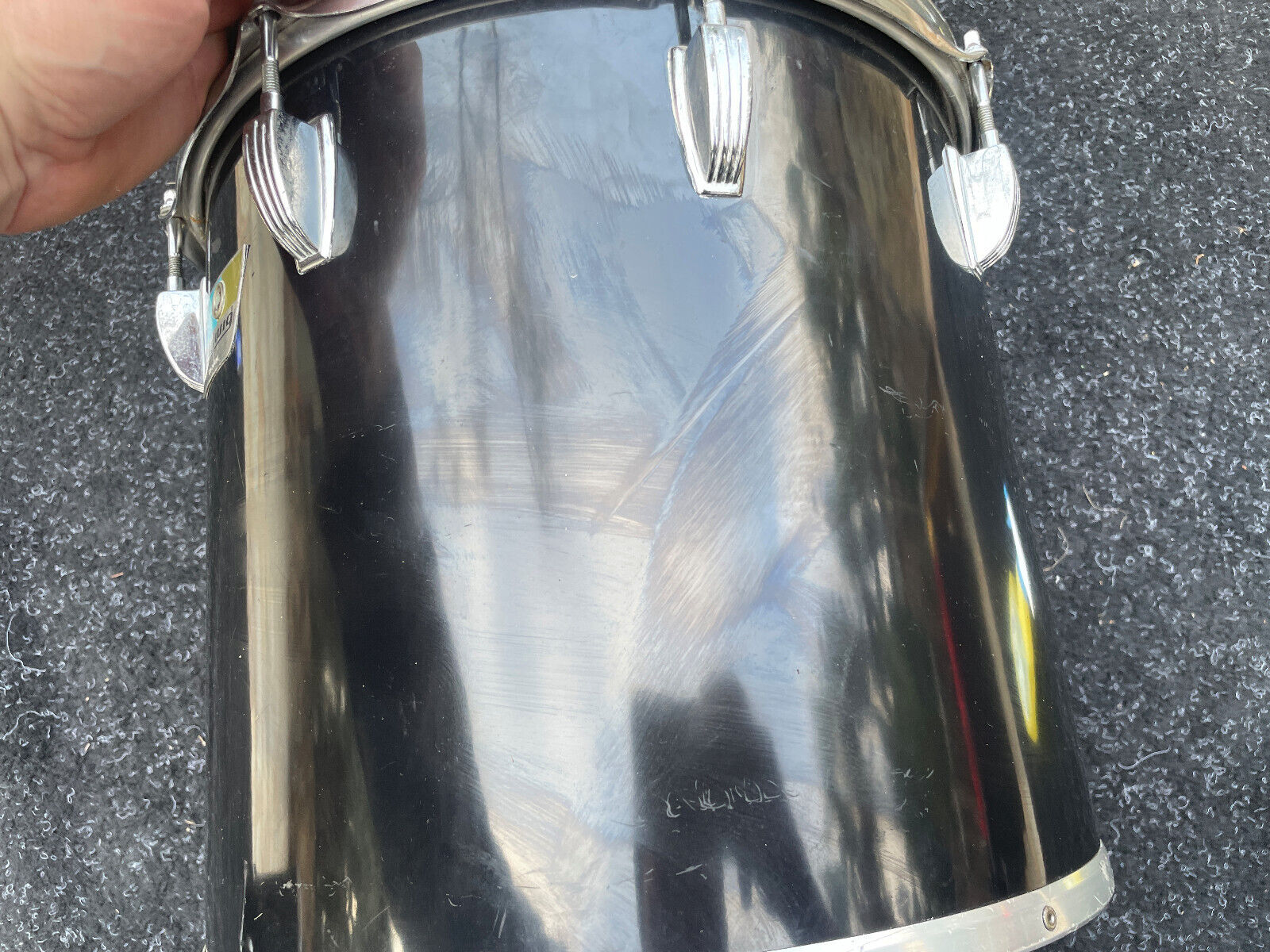 The drum has  several scratches/ normal wear imperfections and also has rust on the hoops / lugs / chrome .