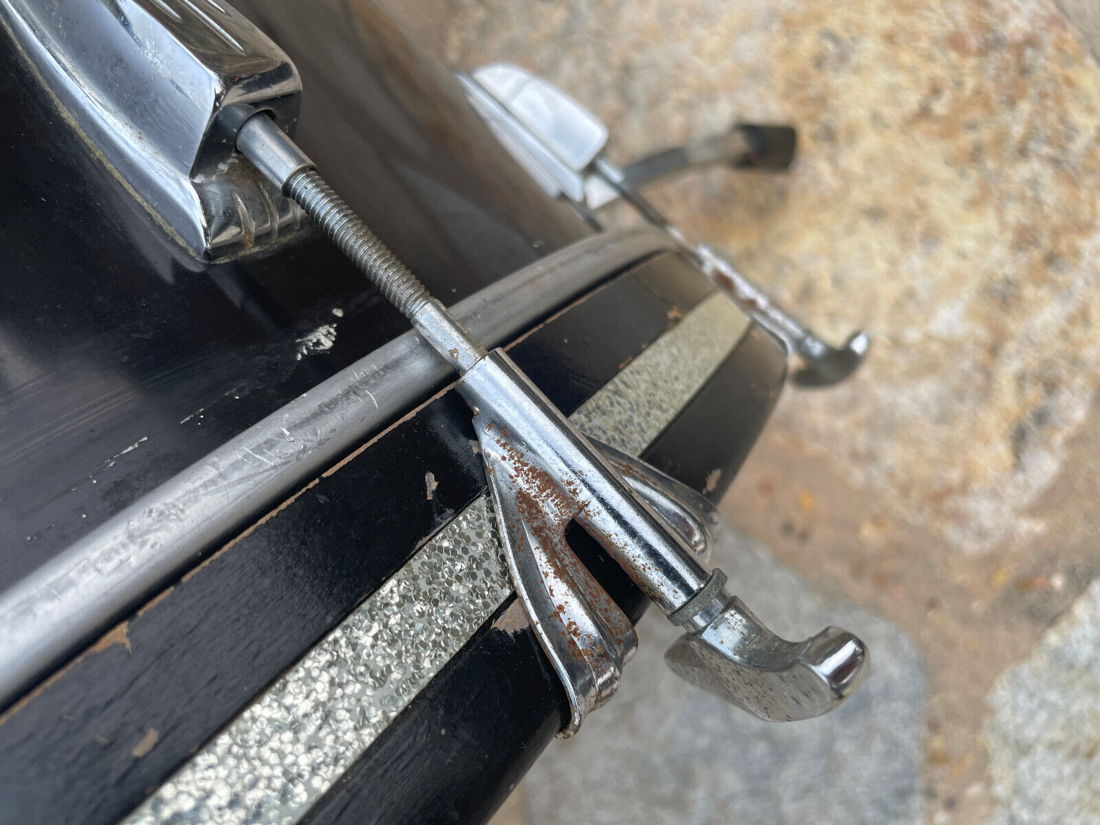 There is some scratches here and there on the shell. A piece of tape on the shell. The hoops had several spots of paint wear where the black has worn off.
