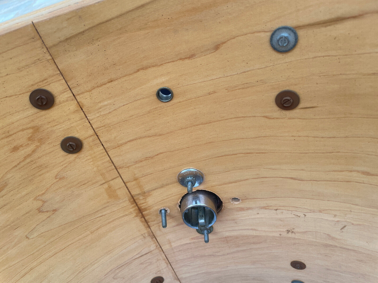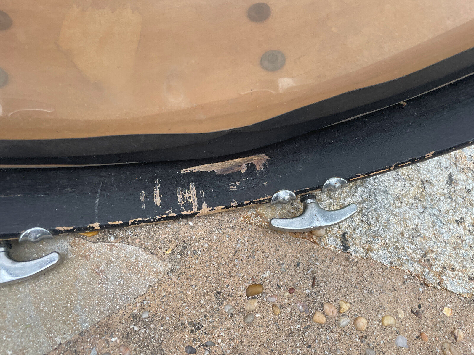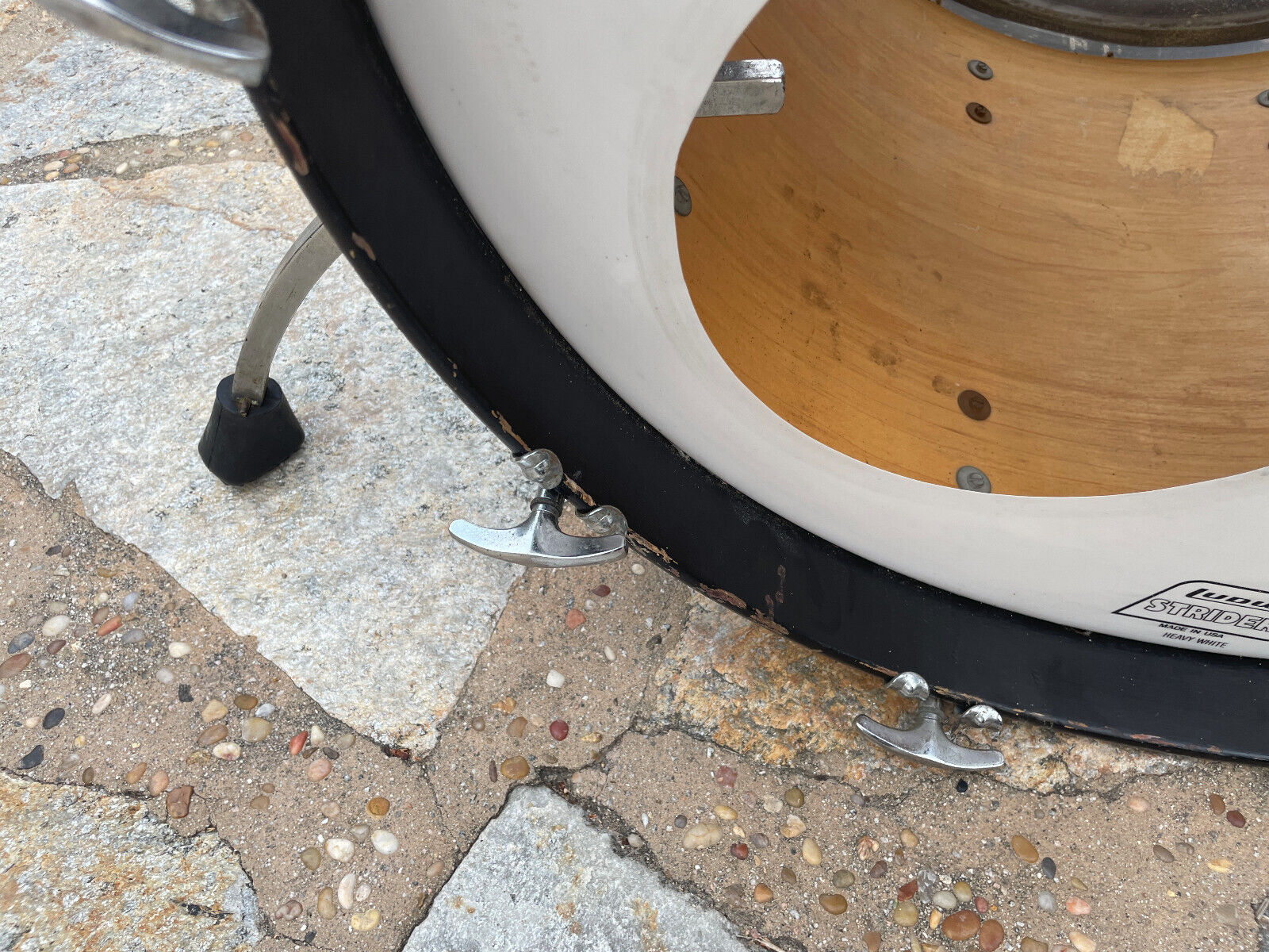 Has the 4 thicker bass drum legs. No re rings. Clear interior shell.
