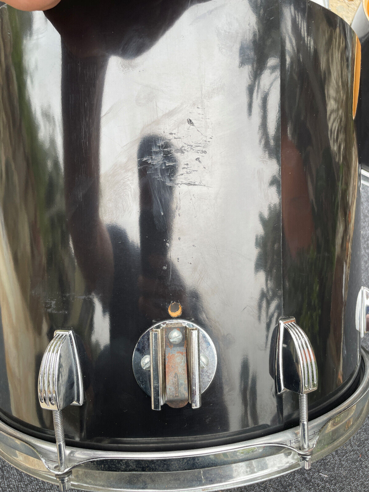 The two largest concert toms (16 + 15) there is a extra hole near their mounts (see last picture) . Possibly someone put on different mounts at one point on those.