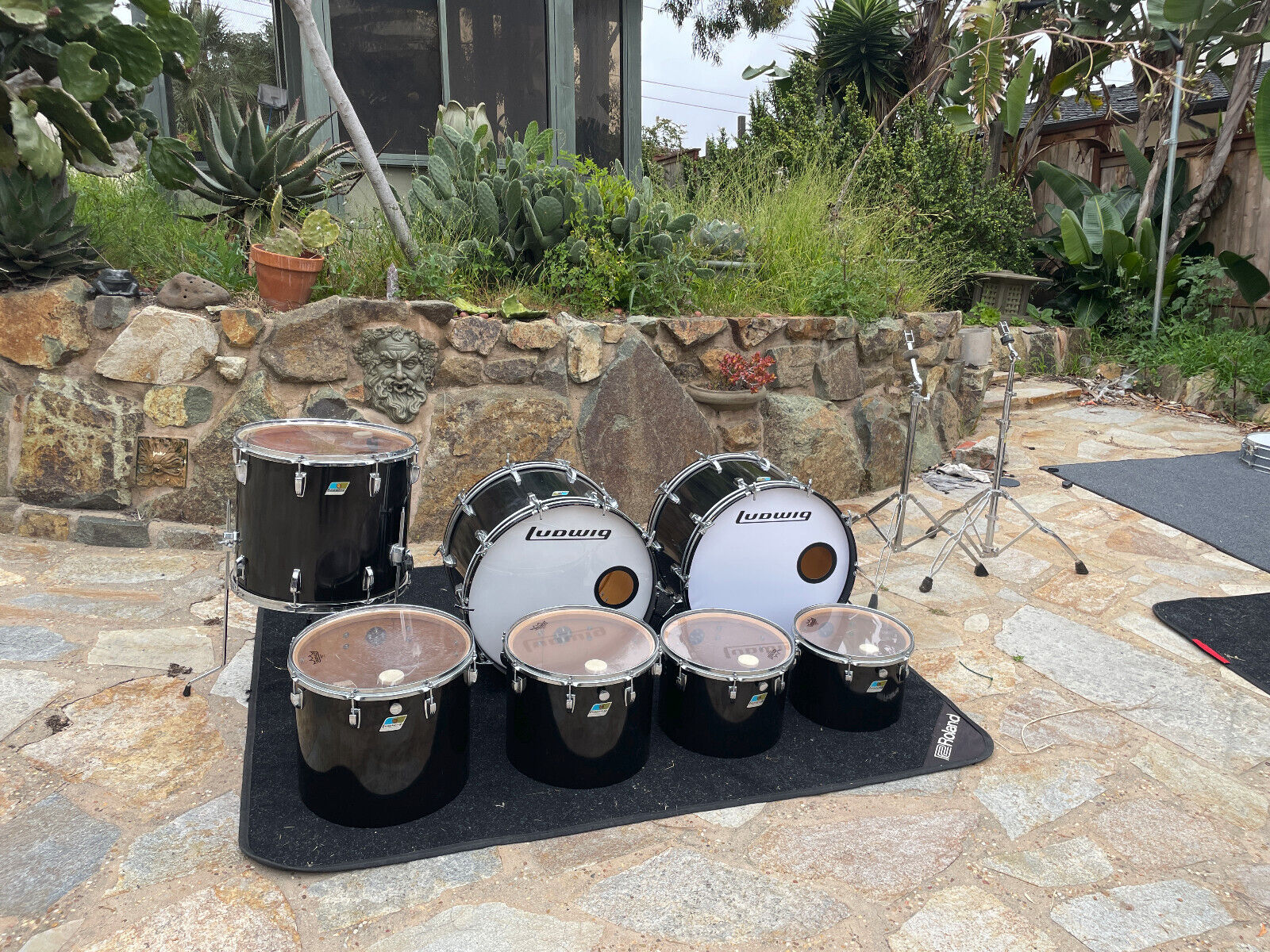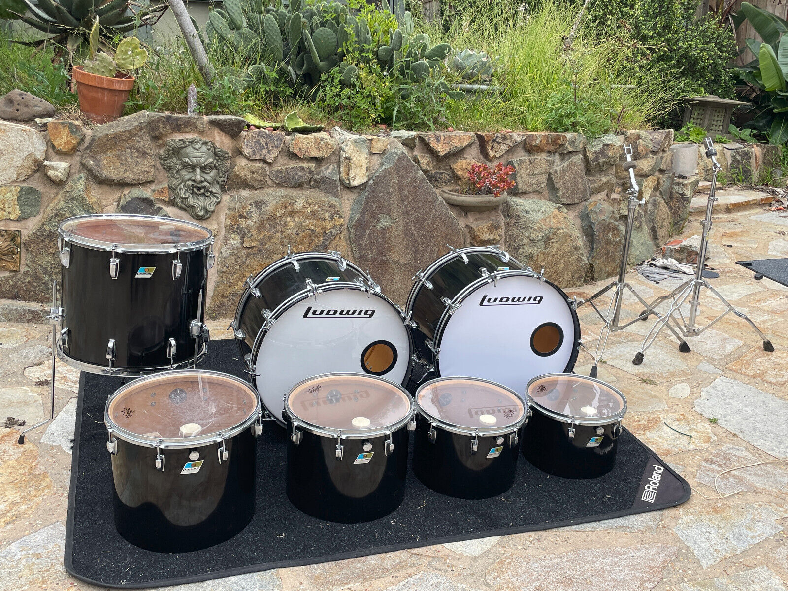 Ludwig Black Cortex 70's 7pc Dbl Bass Concert Tom Drum Kit Set - 3 PLY W/RERINGS