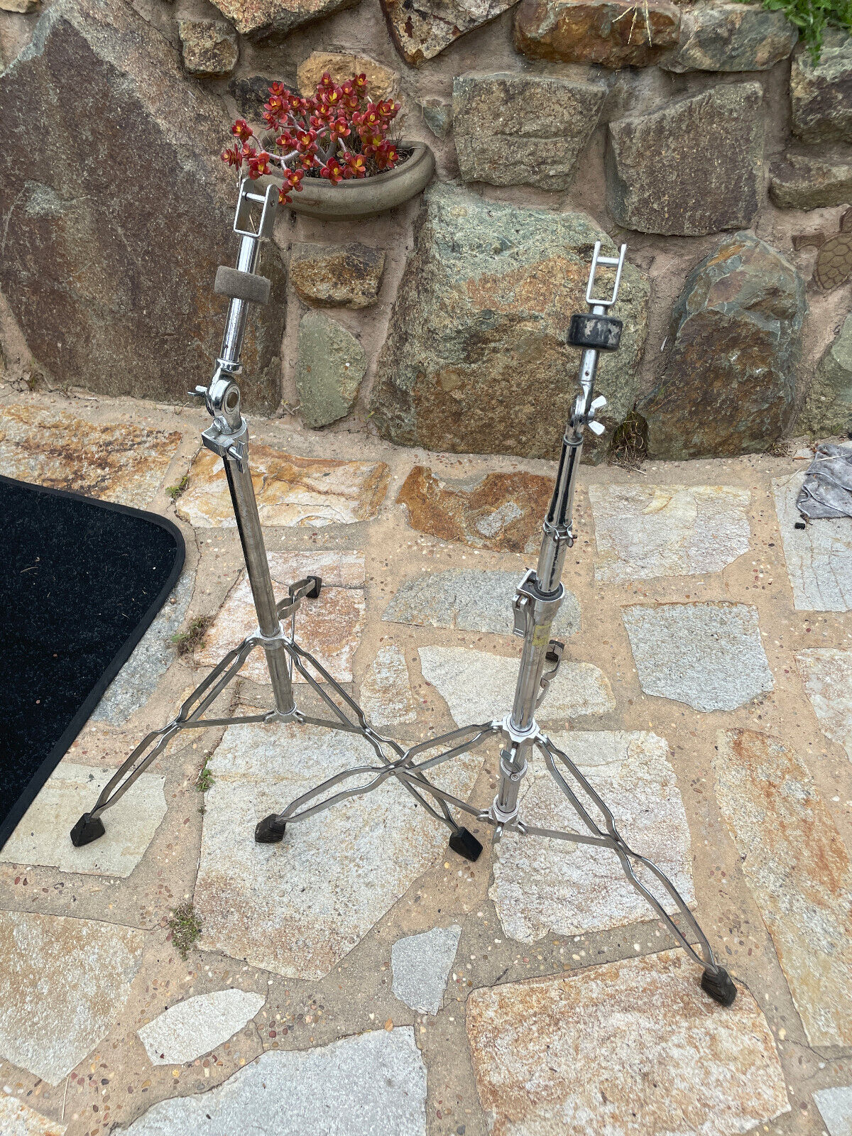 There are two clips stands. Please note for the mounts ...The bottom of them are tama and one is difficult to adjust. May need a different base or to be upgraded down the road. One of the stands I did noticed the wing nut does get kinda close to touching the tom.... . that stand may have been for smaller concerts at one time but needs adjustment