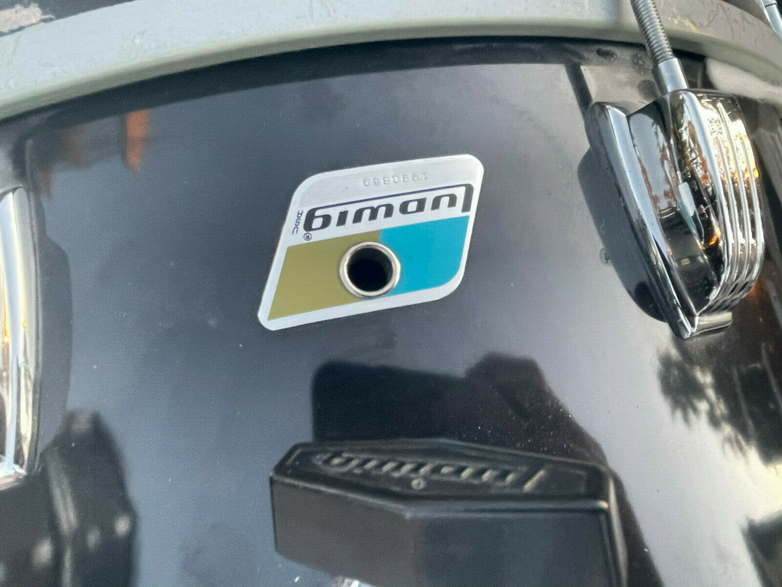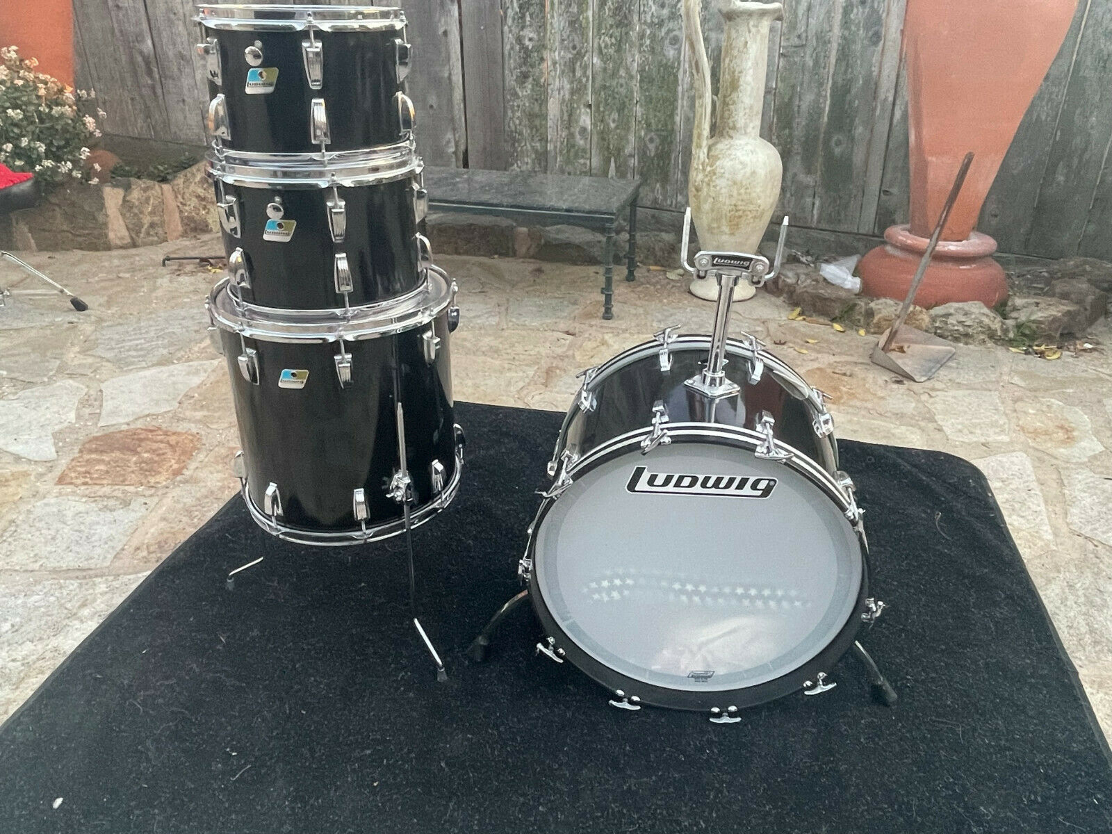 badge indicate 1979. Drums are overall in very good condtion and look great. There is some normal wear on the bass drum hoops and a couple dings near the badge on the floor tom. It could also use new bottom / top heads soon.