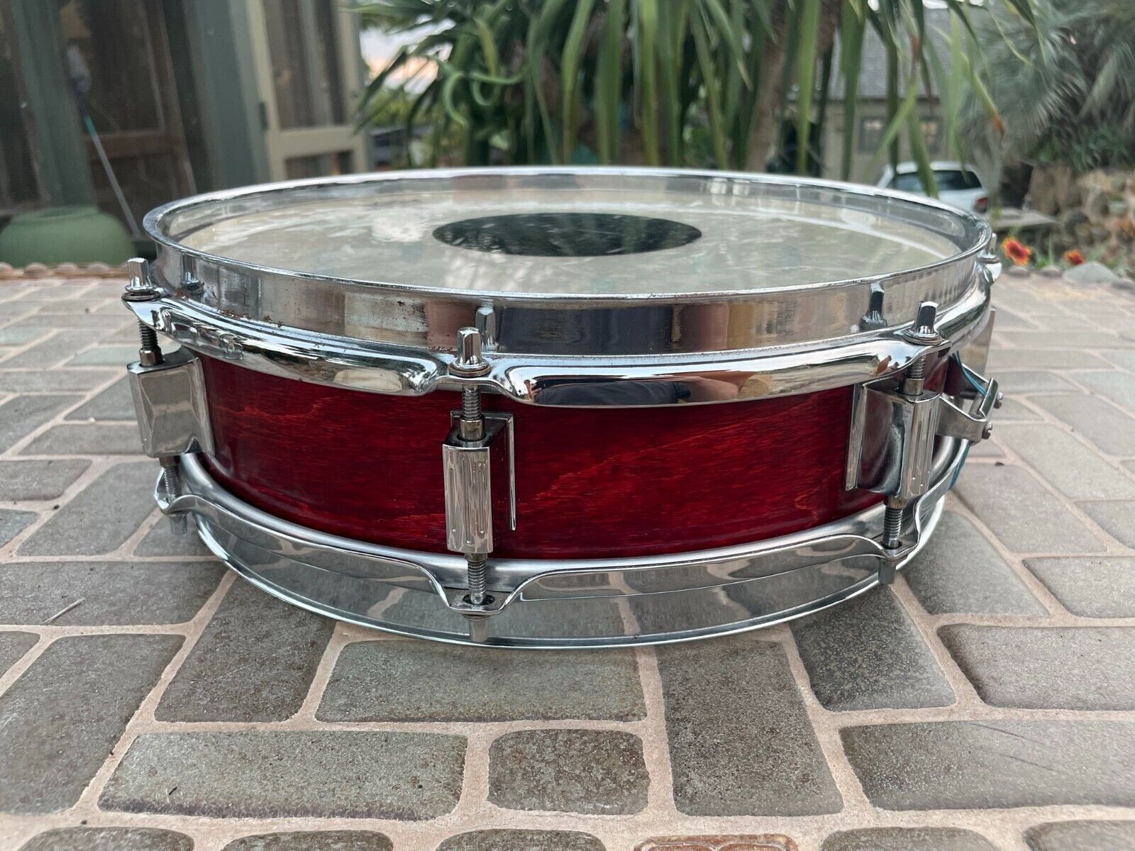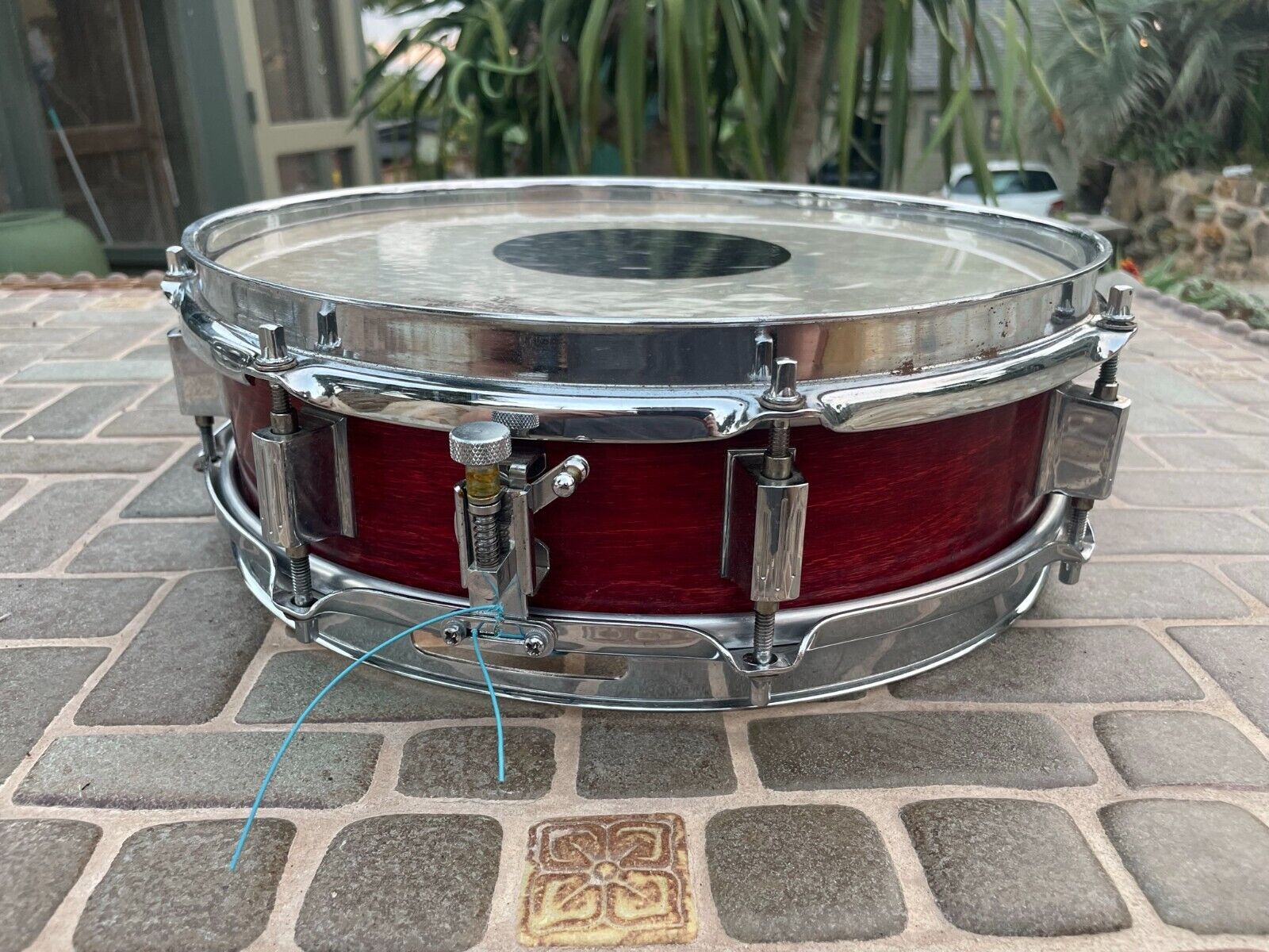Vg condition. Some rust/ oxidation on interior screws but snare looks good