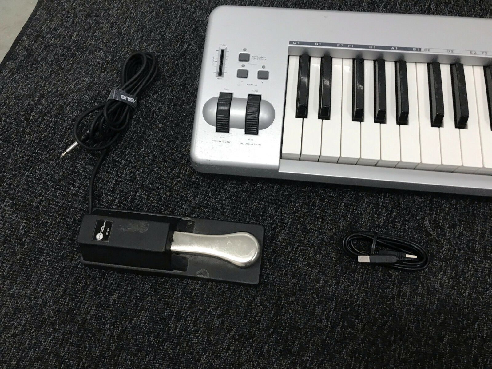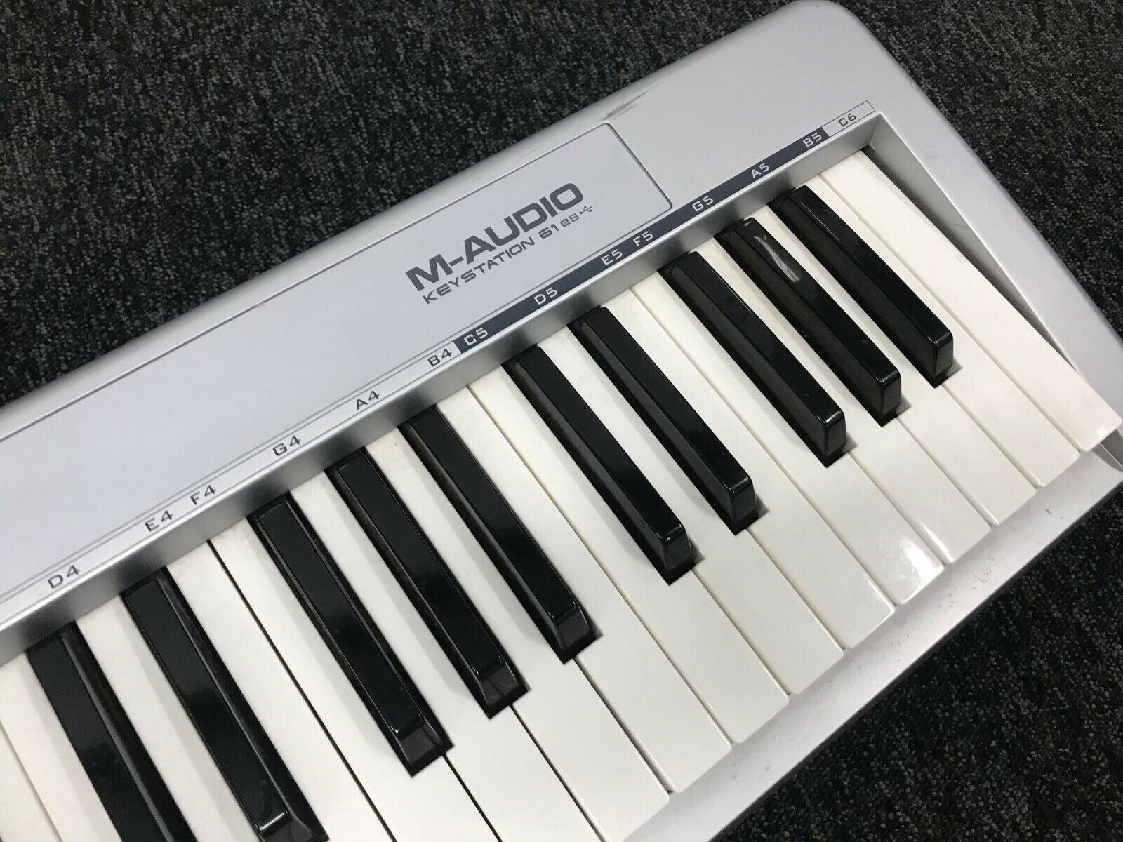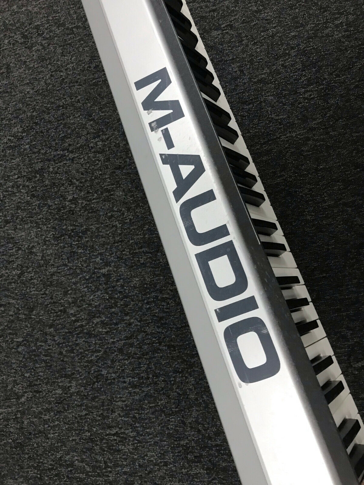 M-Audio Keystation 62 ES 2018 Silver. Has scratches and rubbing on it. Includes footpedal.