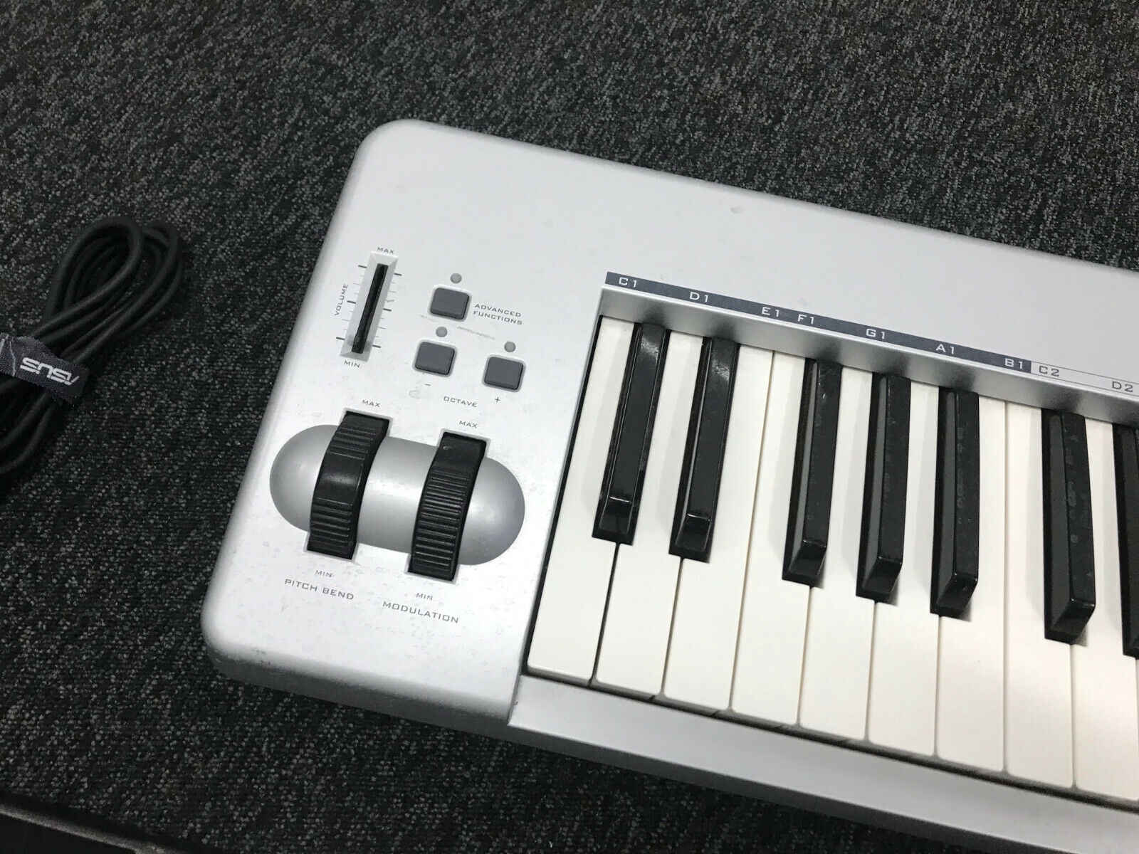 This is a premiere keyboard controller to use with music composition software such as Logic Pro.  In great condition and produced original keyboard music and also worked with Final Cut Pro.  The only reason it is being sold is to obtain 88 keys for expanded composition.  However, the 62 keys is a very convenient size but has the feel of a full keyboard and can accomplish that in the manner in which you play it.  Never a glitch.  Ships in original box with power cord.  When space is a problem this keyboard controller is the answer.  It sat unobtrusively by a corner desk with the laptop used.