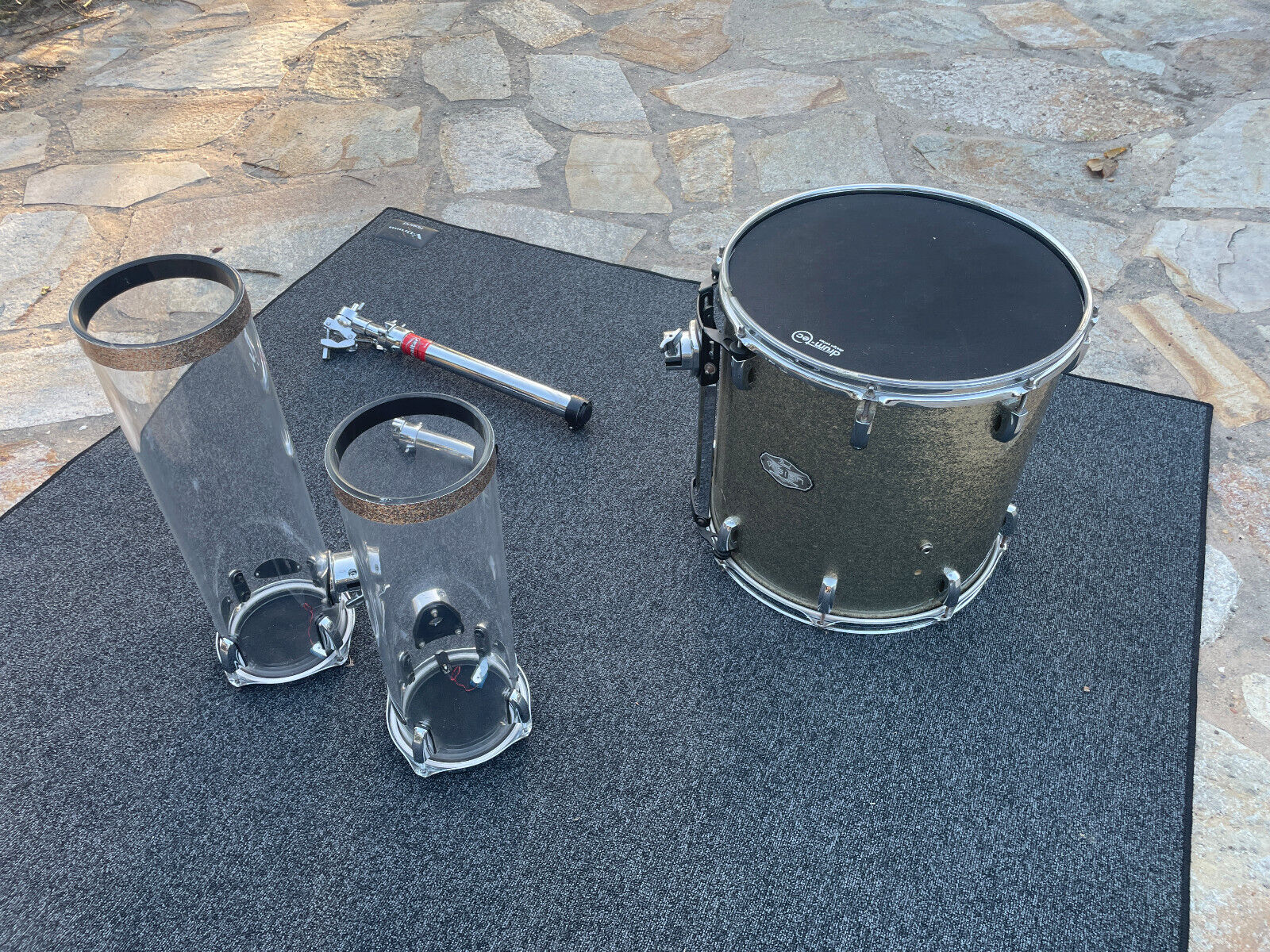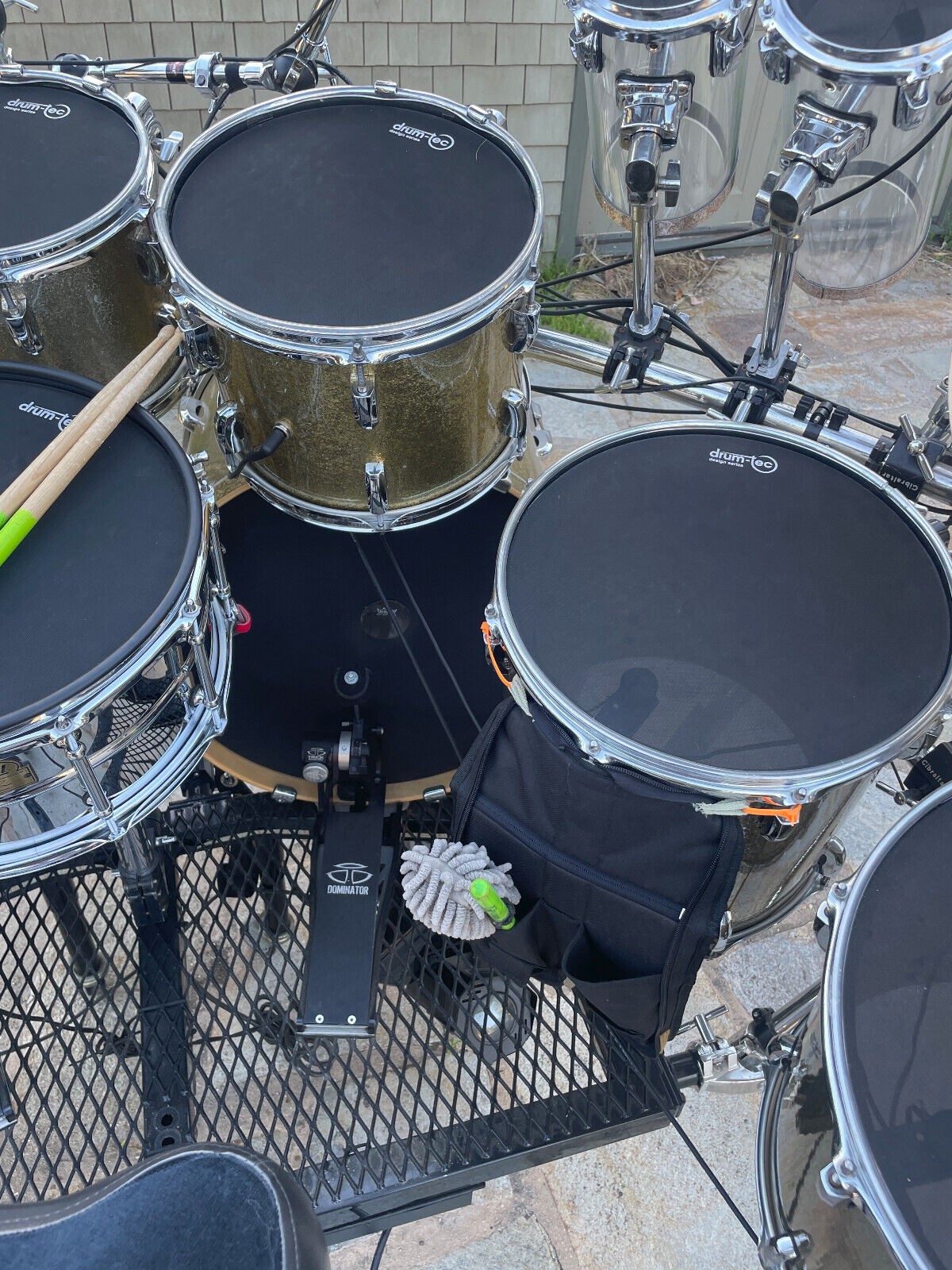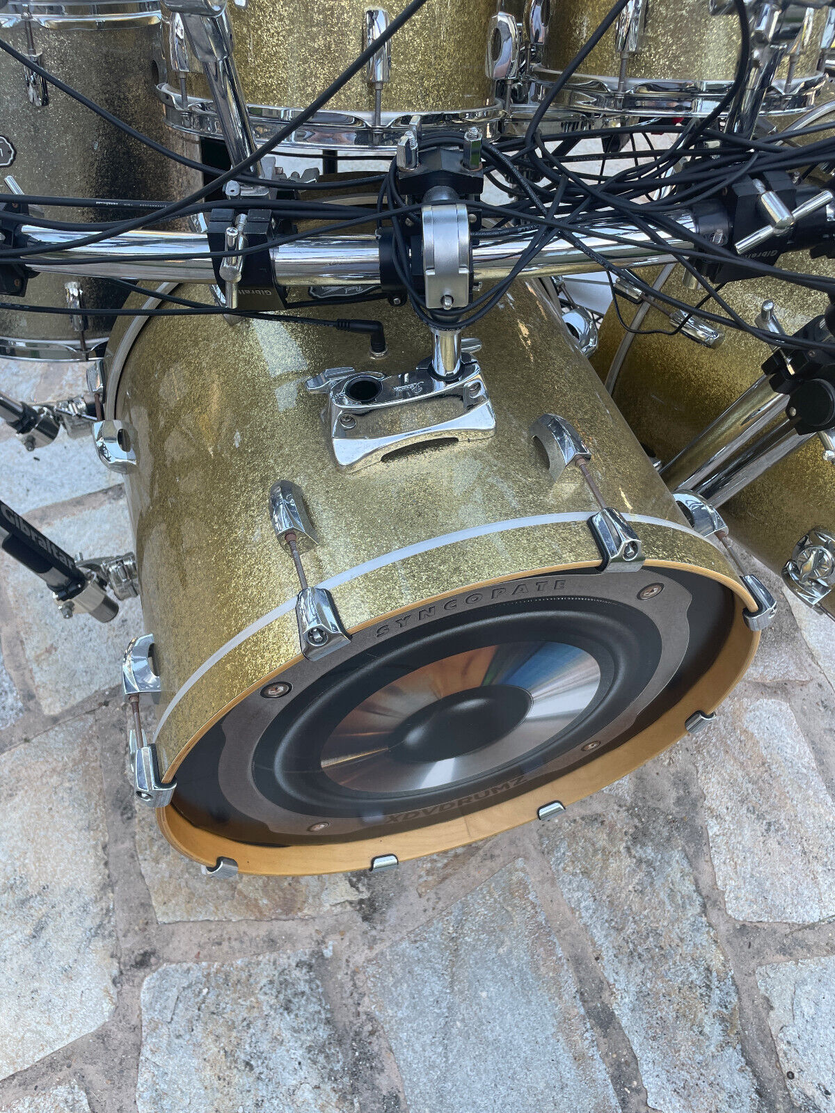Drum shells are mostly Pearl vision (gong is session studio select) with Custom acoustic conversion triggers mostly by Stealth drums (RIP). Includes that gong and some rocket toms by pearl. Sizes of the drums 8,10,12,14,16, extra 16", 4 Octobans (two are currently setup) ... there are two extras originally that came with the kit I took off for simplicity reasons. I noticed one of them has a crack near the lugs on one of the extras for this. Dual kicks 22x18. Pearl Ian Paice Snare drum. 20" Gong that was rewrapped to match (while it’s not perfect color match looks good enough)