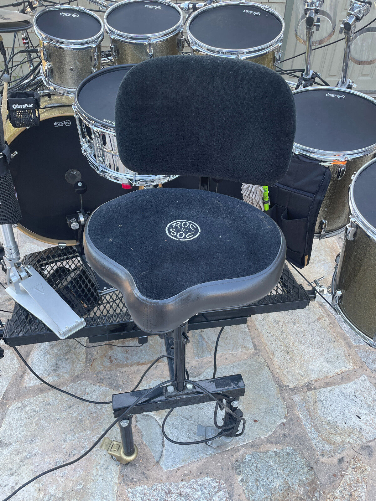 The rack System.... the rack system is one of the most insane I have ever seen. It is a rare Level drum rack with rolling / locking Wheels and throne support. Honestly this is the best one I have ever seen them make. You can have this monster kit in the garage or somewhere else and all you got to do is roll it around without having to take it apart. This also has custom Gibraltar hardware main rack parts with an added light system and Blow it fan.