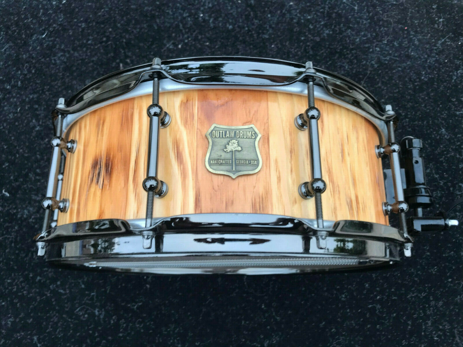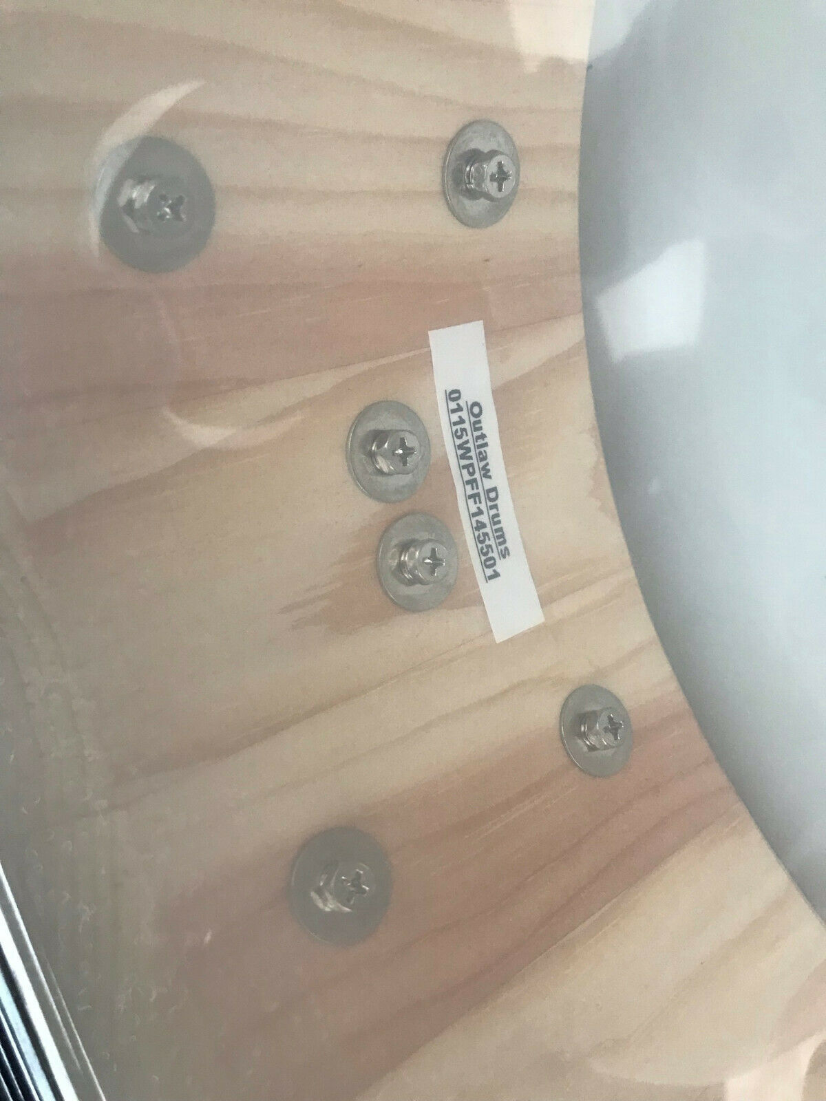 Outlaw Drums snare is made of 1/2 thick white pine and hand crafted right here in USA. Black nickel hardware includes 2.3 mm triple flange hoops and brass tube lugs.