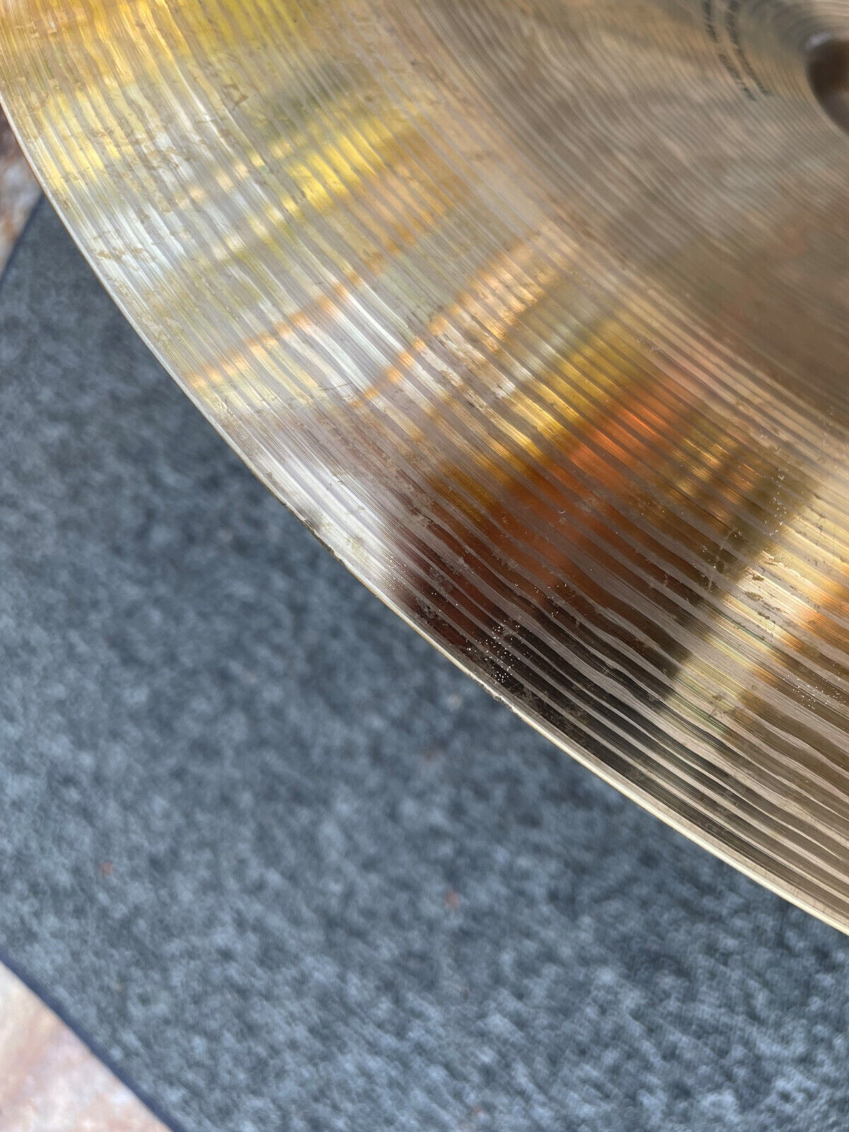 No cracks but does have a noticeable dented edge or edge dent (see pictures) . Other than that normal wear on the cymbal