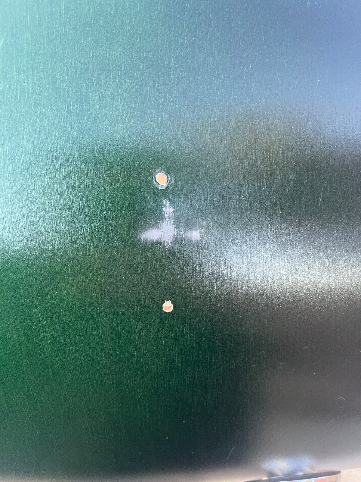 Has several scuffs and blemishes on the shell (see pictures for condition). Missing front head / hoop/ and claws. Badge also missing. Rubber tip on one foot missing