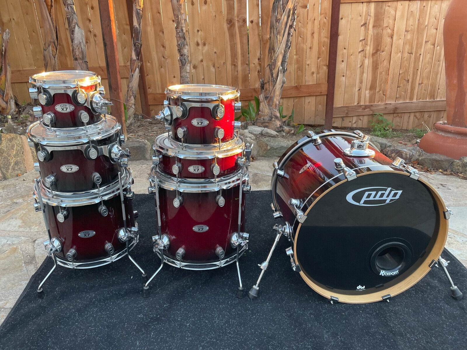 PDP X7 Maple Red Sparkle Fade 7pc Drum Set 8x7,10x8,12x9,14x12,16x14,14x5,22x18