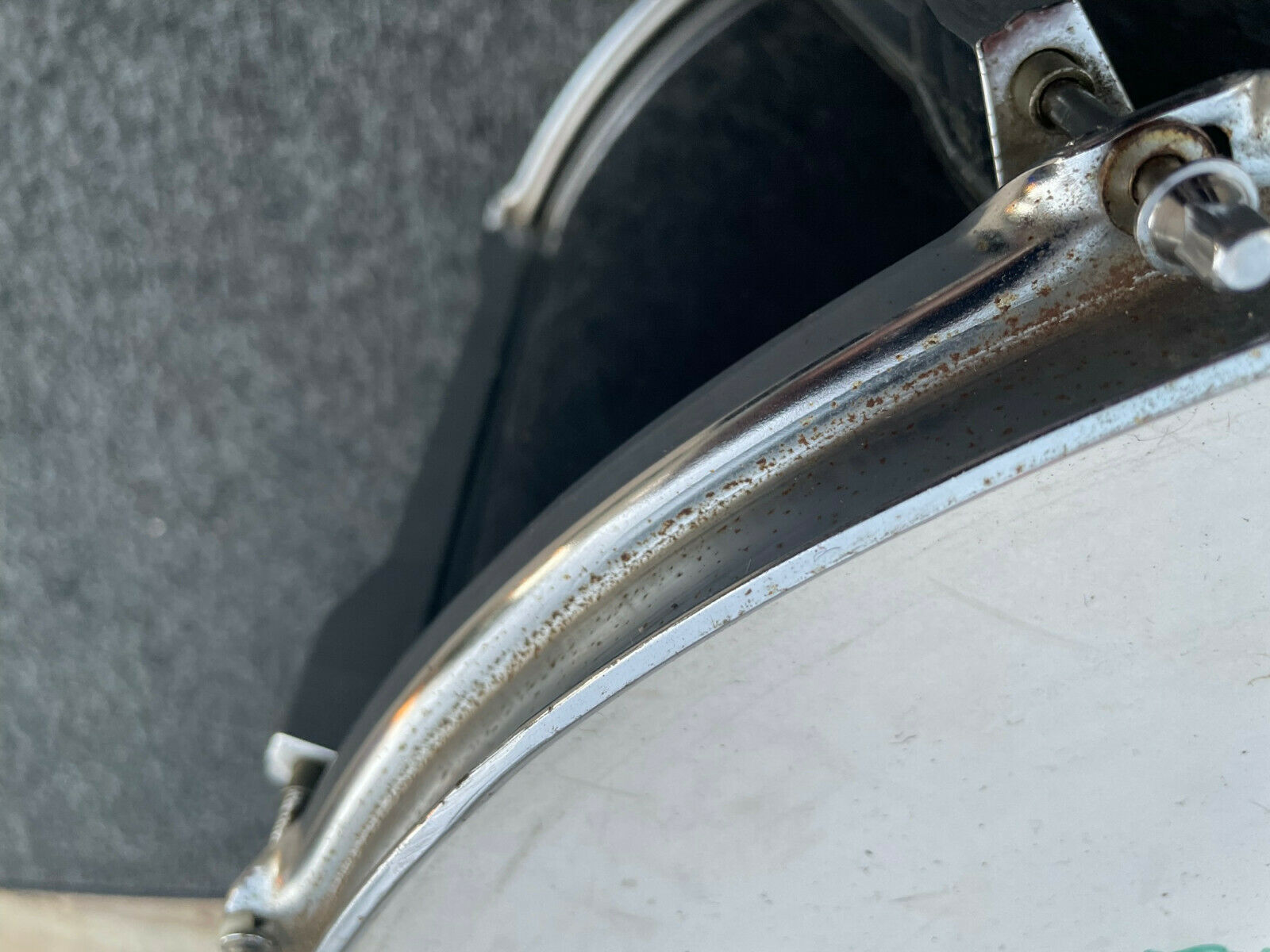 ]The drum does have a few marks/scratches and some mild oxidation and rust on hoops but can be further cleaned .
