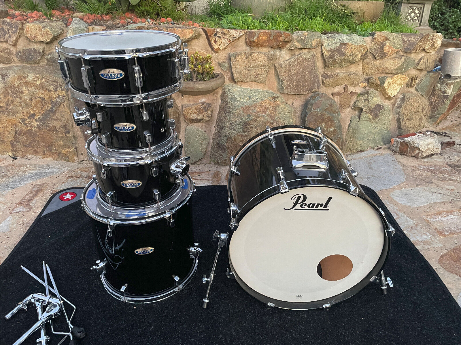 Pearl Decade Maple 5pc Drum Set kit 22.18,10.7,12.8,16.16,14,5.5 - Black