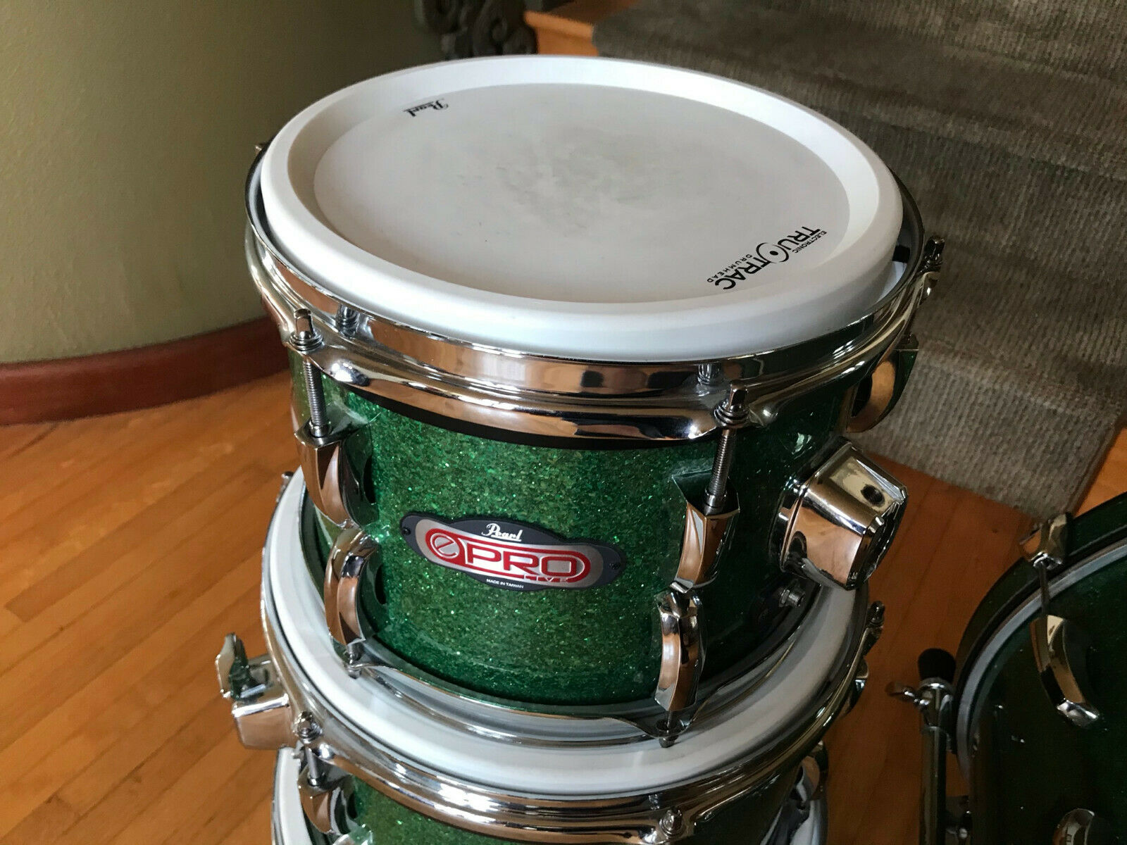 Pearl E pro Tru Trac 4pc Drum Set kit Green Glitter Pad Set w/ Electronic heads