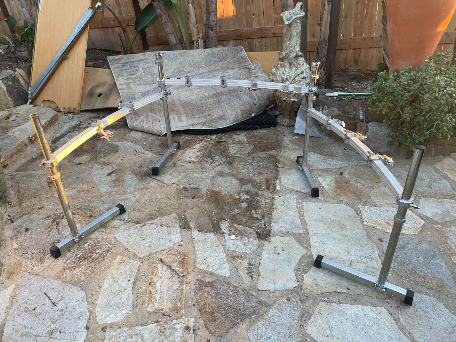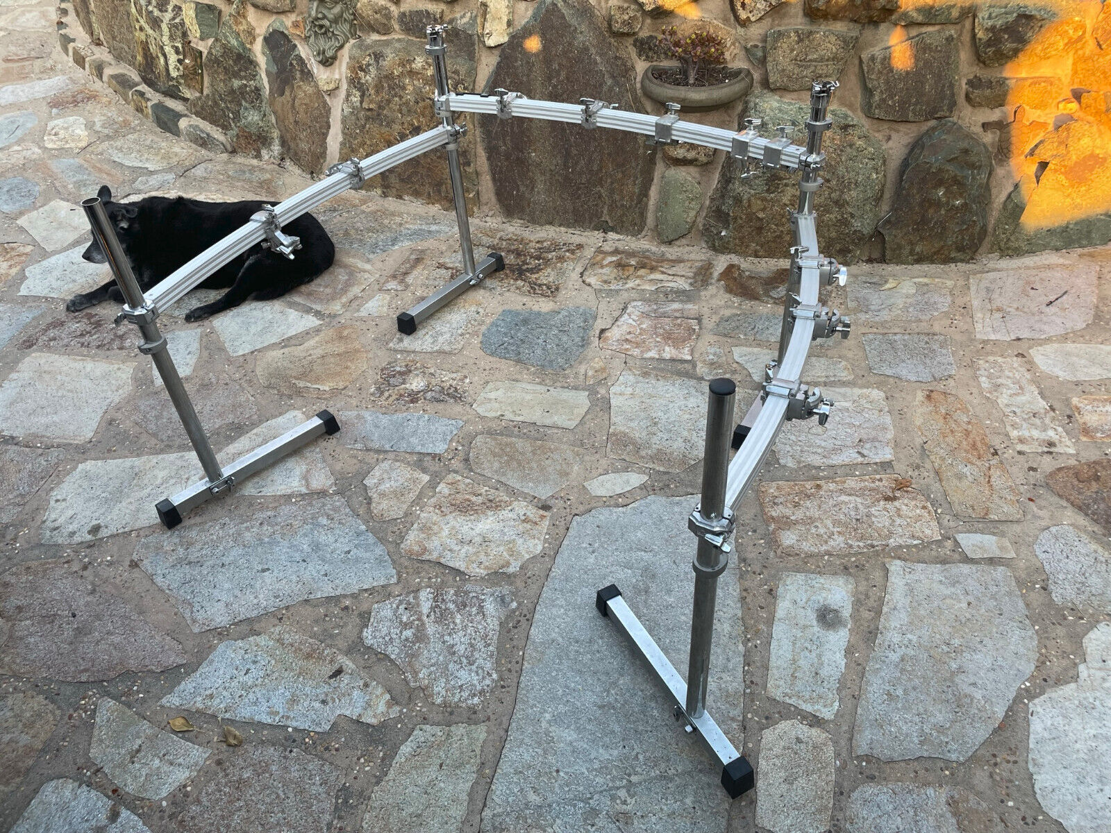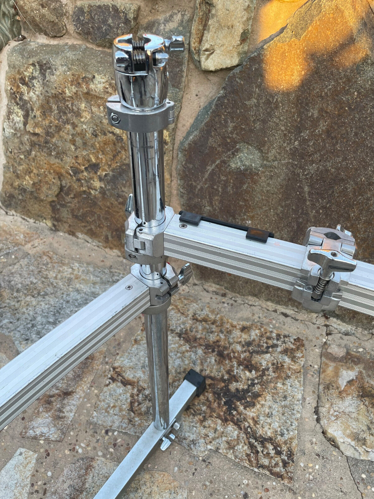 Has 10 clamps!! Missing a cymbal post cap on back. Overall good/very good condition. A couple minor oxidation / rust spots here and there on the chrome. See pictures
