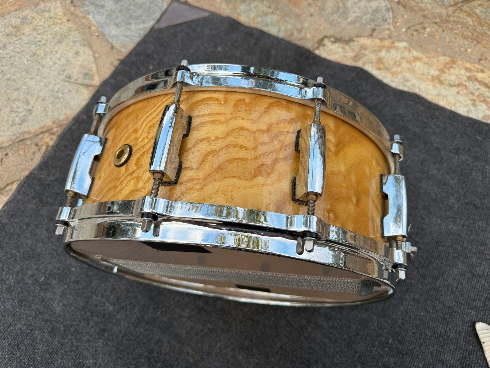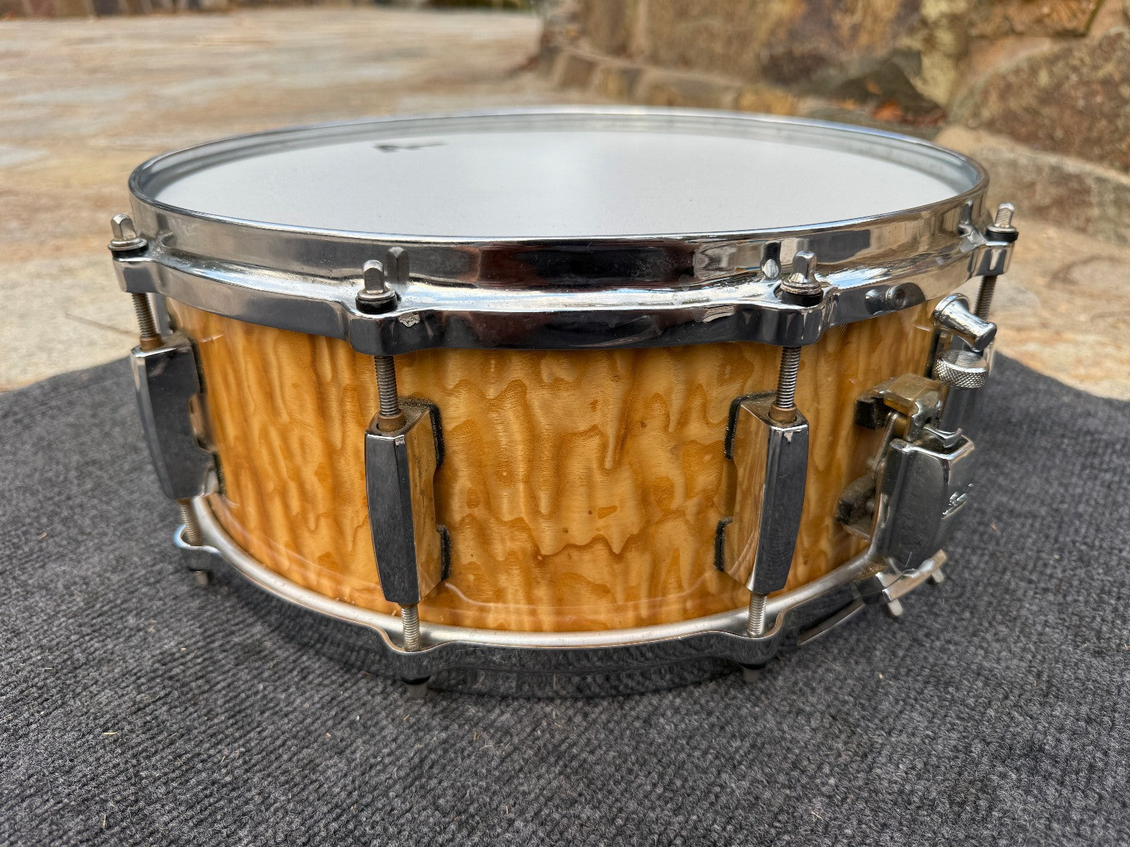 Beautiful snare. Has rerings. Maple shells and diecast hoops.