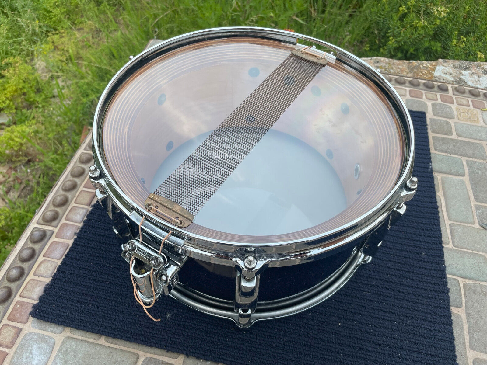 Sounds amazing. The drum is in Good-VG condition. There is some pitting on the chrome hardware. There is a few marks on the shell and also some age on interior wood. Probably from being stored. But a really snapping snare other than some mild cosmetics