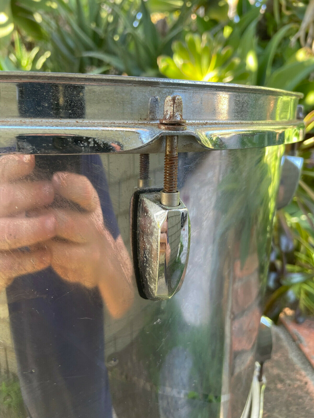 This drum has rust and scratches and scuffs all over