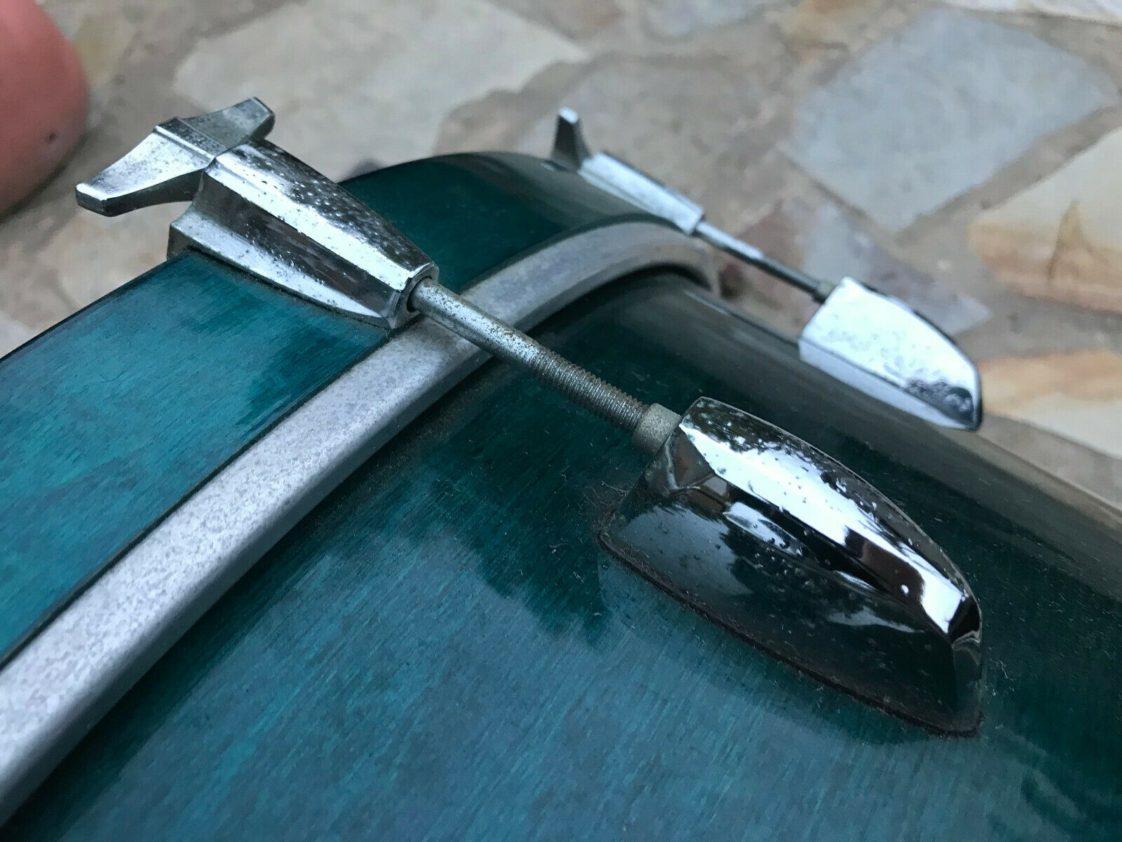 The drums were cleaned up. They do have pitting and some rust near the I.S.S mounts. Most of the rust was cleaned up but still has some near the mounts and here and there. Does have pitting/oxidation on chrome and drums. Finish is fine. A couple marks. Looks fine.