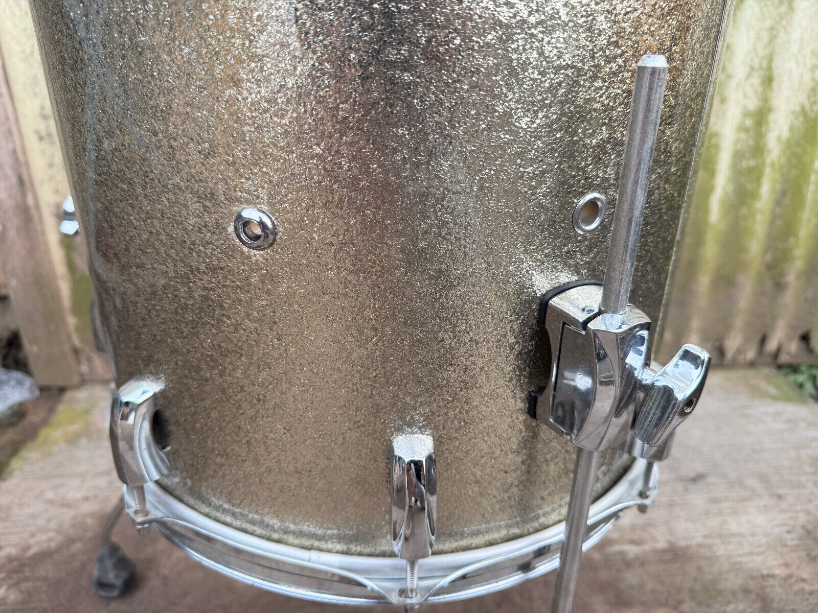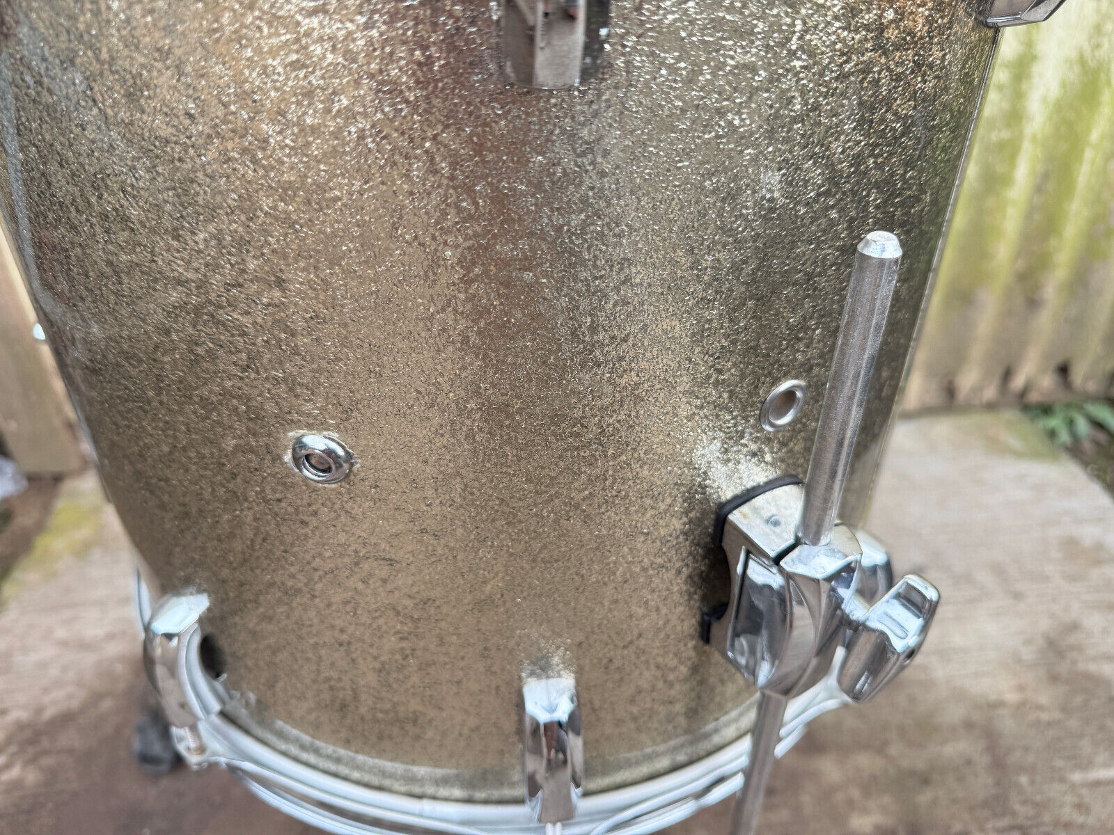 There was a extra hole drilled into the floor tom with a grommet hole drilled into it (see pictures)