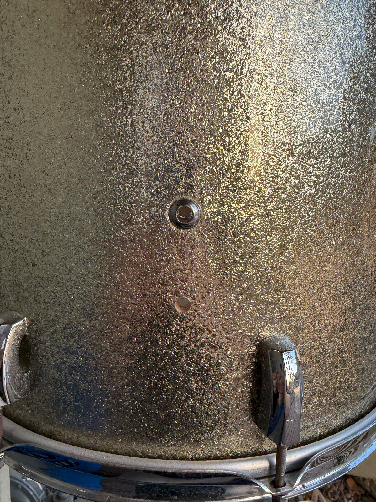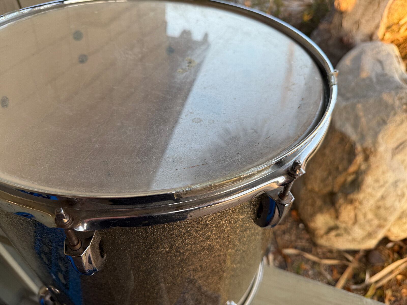 Condition wise its good but some things to note: There is some inconsistencies in the wrap and finish from age . The floor tom leg brackets were removed and this was converted into a hanging tom so has a opti mount instead. One of the floor tom leg holes has a grommet installed over the hole. Could probably be reverted back to original if you got the mounts. Also could use new heads as the bottom head is mesh and top is a random head i used when I removed the electronic head.