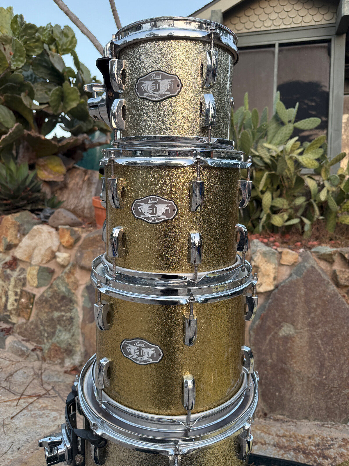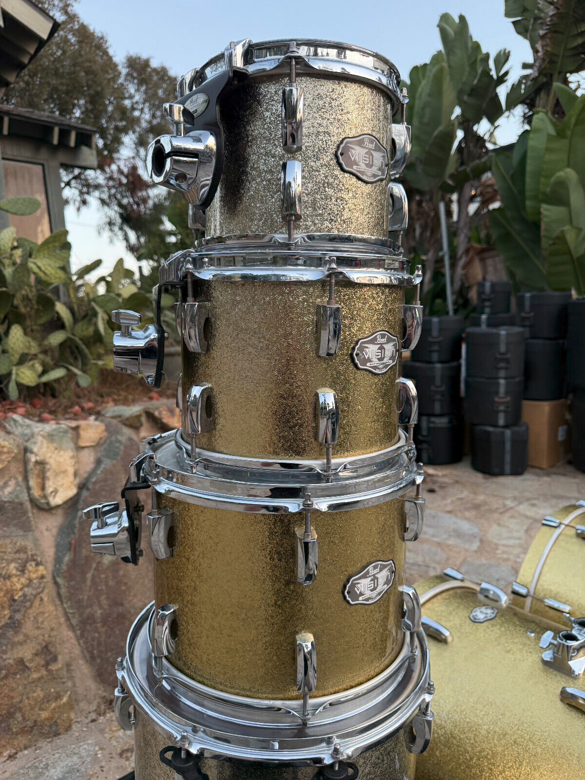 Pearl Visions Birch Double Bass Drum Kit 7pc Champange Sparkle !!
