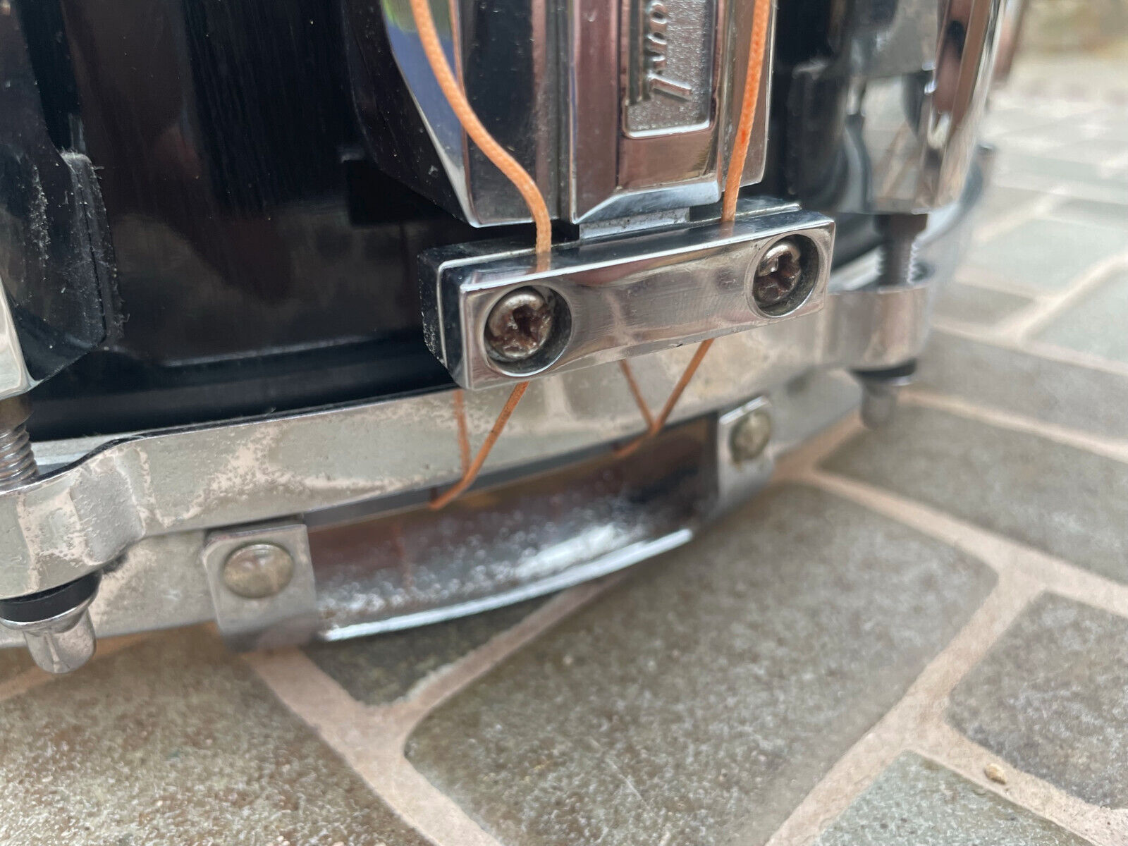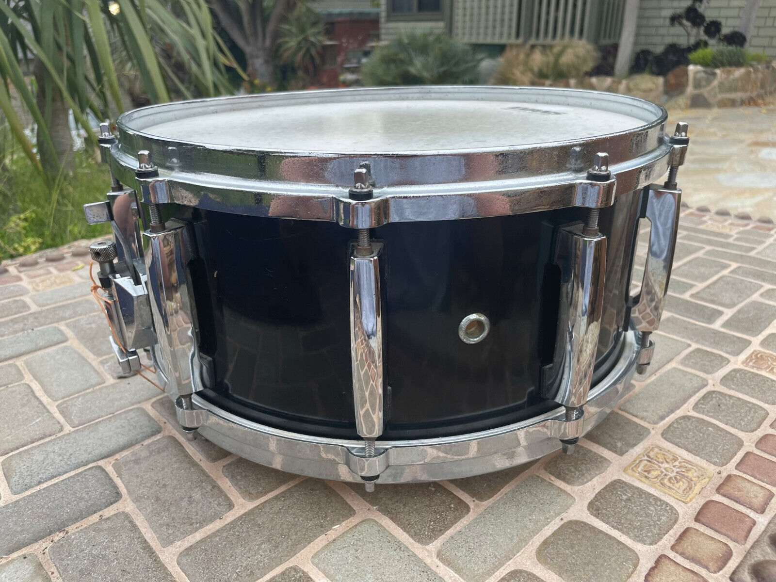 This is a awesome snare and hard to find. This is the equivalent to the japanese version of a Custom Z snare. The snare did originally have pitted lugs (these are known to break) so the lugs were replaced as some of them were broken. The original die cast hoops, snare and butt plate are still on the snare still but they are pitted / oxidized (see pictures). A couple screws are slightly stripped on the throwoff if you ever want to remove they would need to be reaplced. One snare guard also looks bent but is a cool snare and sounds good.