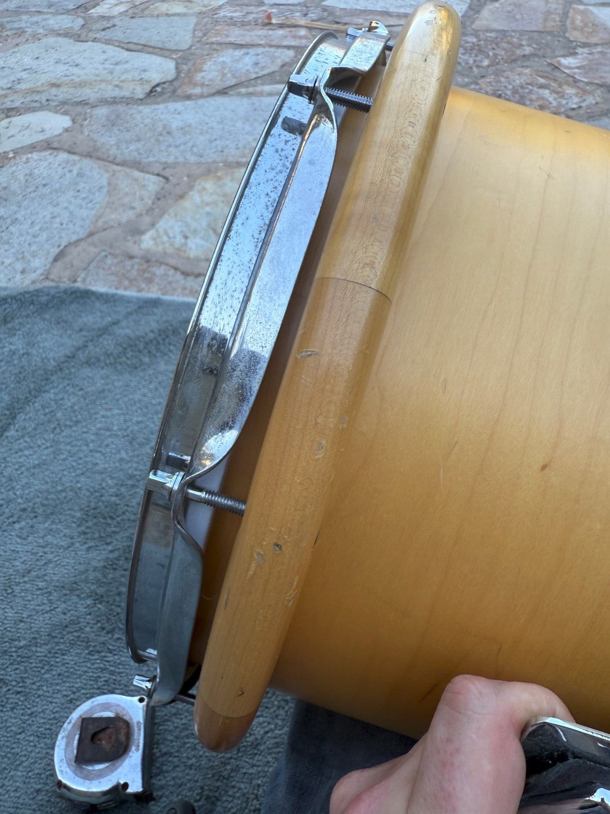 I would say players condition due to several marks and rub spots especially on the lips of the outer drum shell. Interior is fine. Also some oxidation on the chrome but that would be cleaned up. Otherwise it a hard to find drum